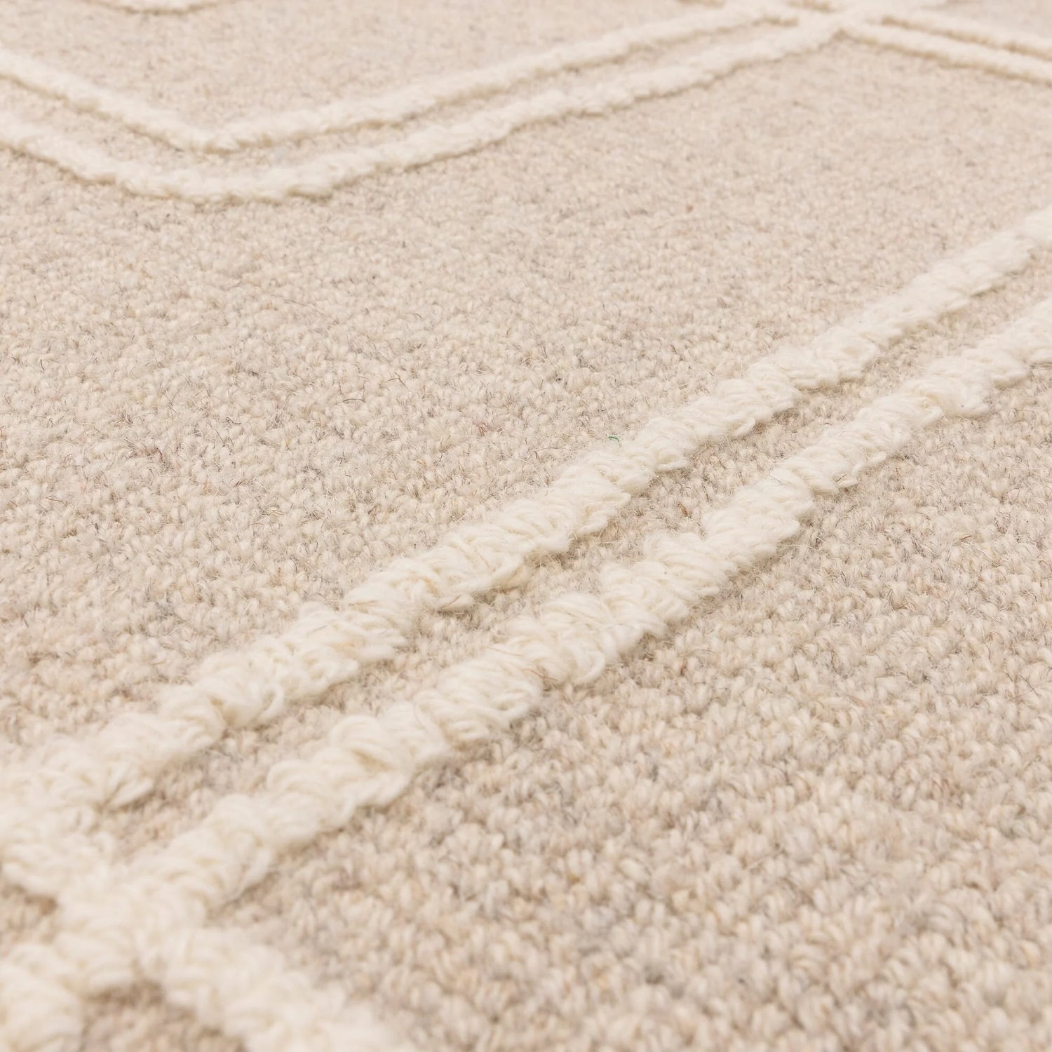 The Ada Sand Rug will elevate your space with its elegant and modern geometric design. The linear path pattern and neutral tones create a simple yet striking aesthetic, perfect for any room. Immerse yourself in style with the Ada collection.