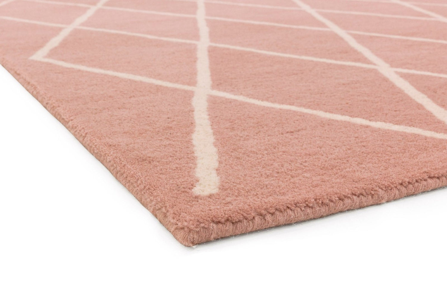 Showcasing a choice of bold yet simple geometric designs, our Albany collection will instantly elevate any living space. This rug features a repeating diamond pattern executed in cream and charming pale pink. Hand-tufted in India, the mid-height pile creates a slightly loftier look and feel, while the pure wool construction is not only durable and easy to maintain, but has natural thermo-regulating qualities that mean it’s warm in winter and cool in summer.