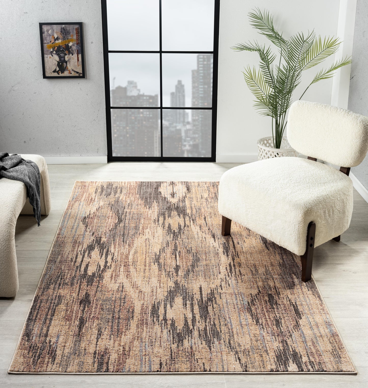 The Alia 654A5 Anthra/Sand Rug brings a bold and contemporary vibe to your space with its striking ikat-inspired design.
