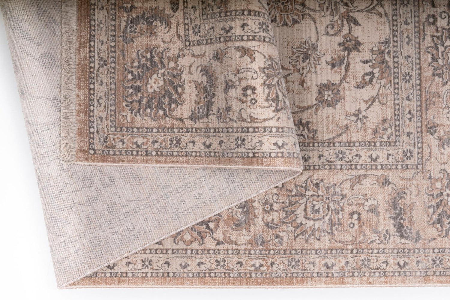 Perfect for living rooms or bedrooms, the rug’s neutral hues blend effortlessly with various décor styles, adding a touch of refinement to any space. Its durable construction ensures it can withstand the demands of busy households while maintaining its beauty, making it a practical yet stylish addition to your home.