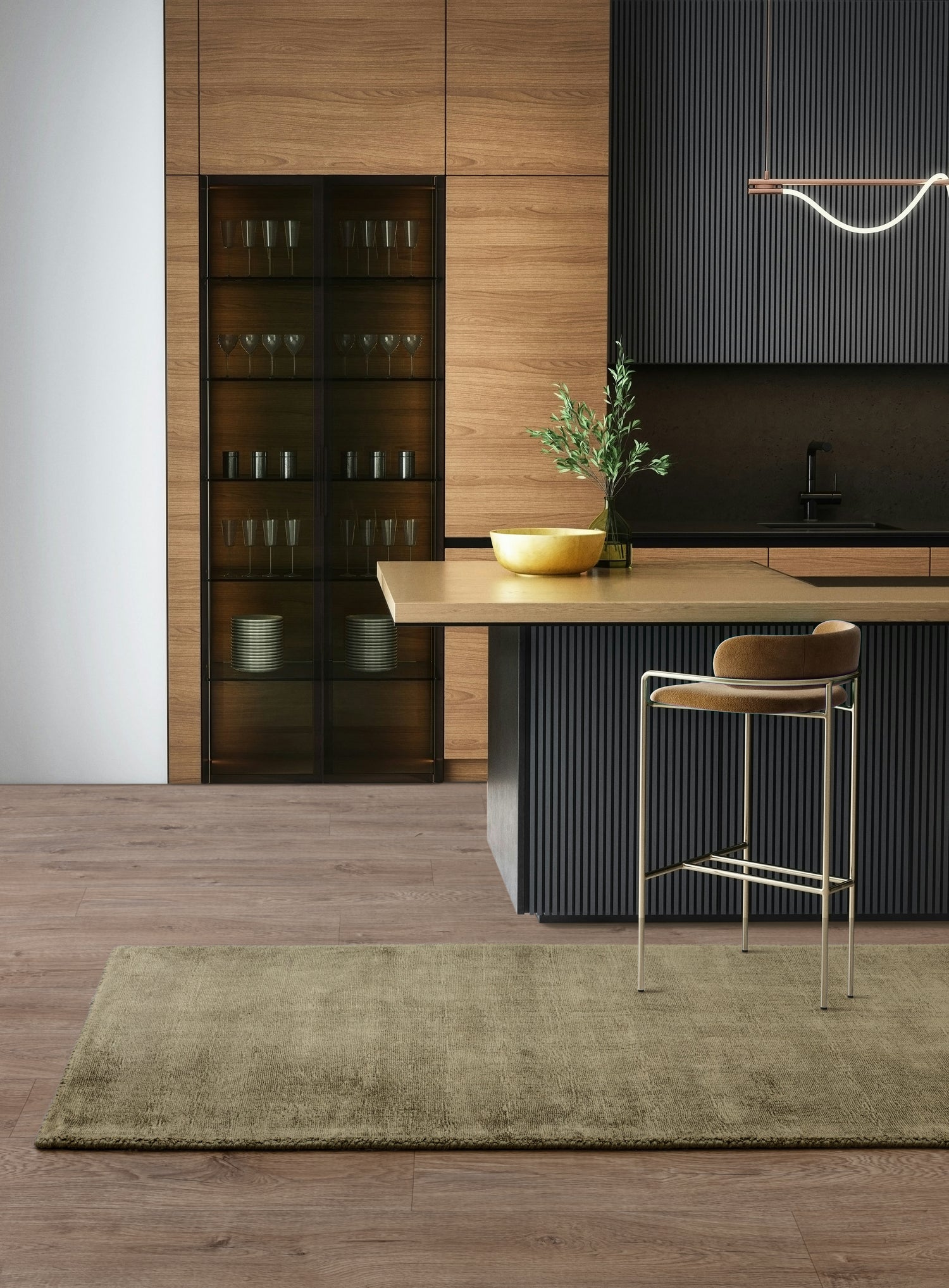 Crafted from viscose, this rug has a soft, silk-like sheen, ideal for adding elegance to lower-traffic areas such as formal living spaces or bedrooms. A sophisticated choice for refined spaces, where it can be appreciated for its luxurious touch with gentle care.