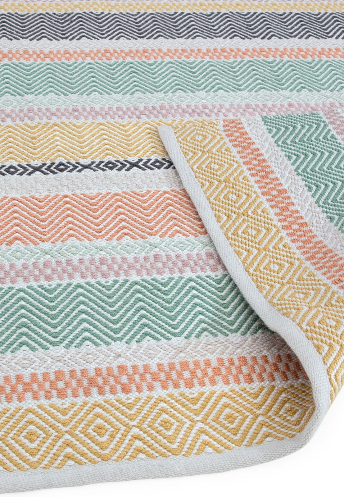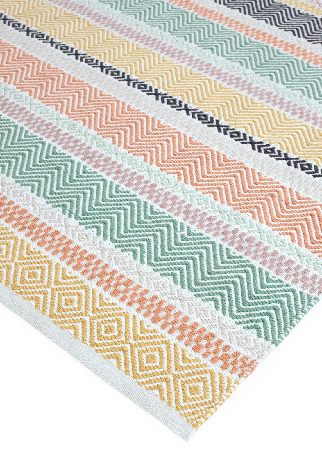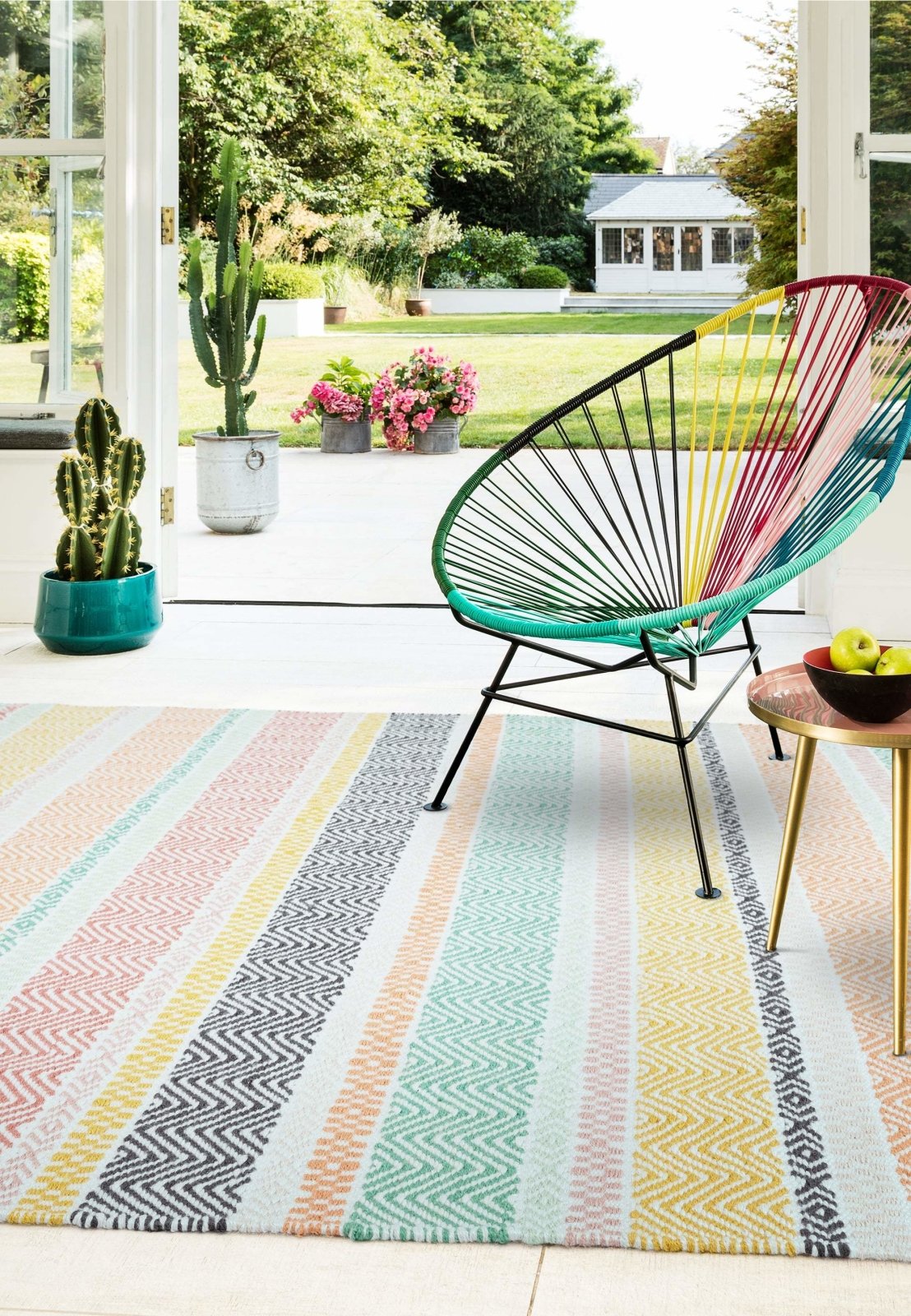 Hand woven in India from recycled fibres, the eye-catching Boardwalk collection of rugs features playful striped designs that uplift the atmosphere of your indoor and outdoor spaces. Long lasting and easy to clean, they add a touch of personality in bright colours.