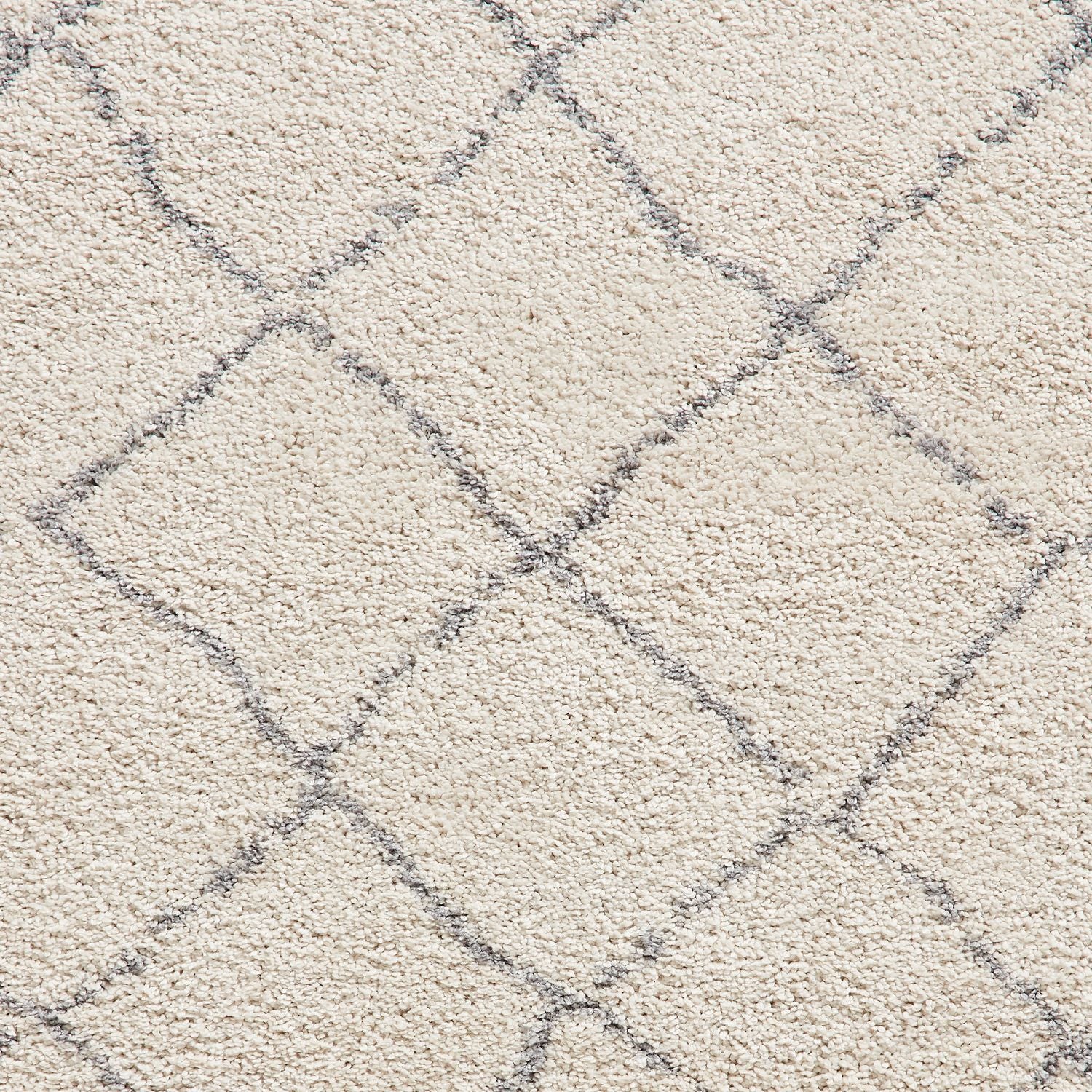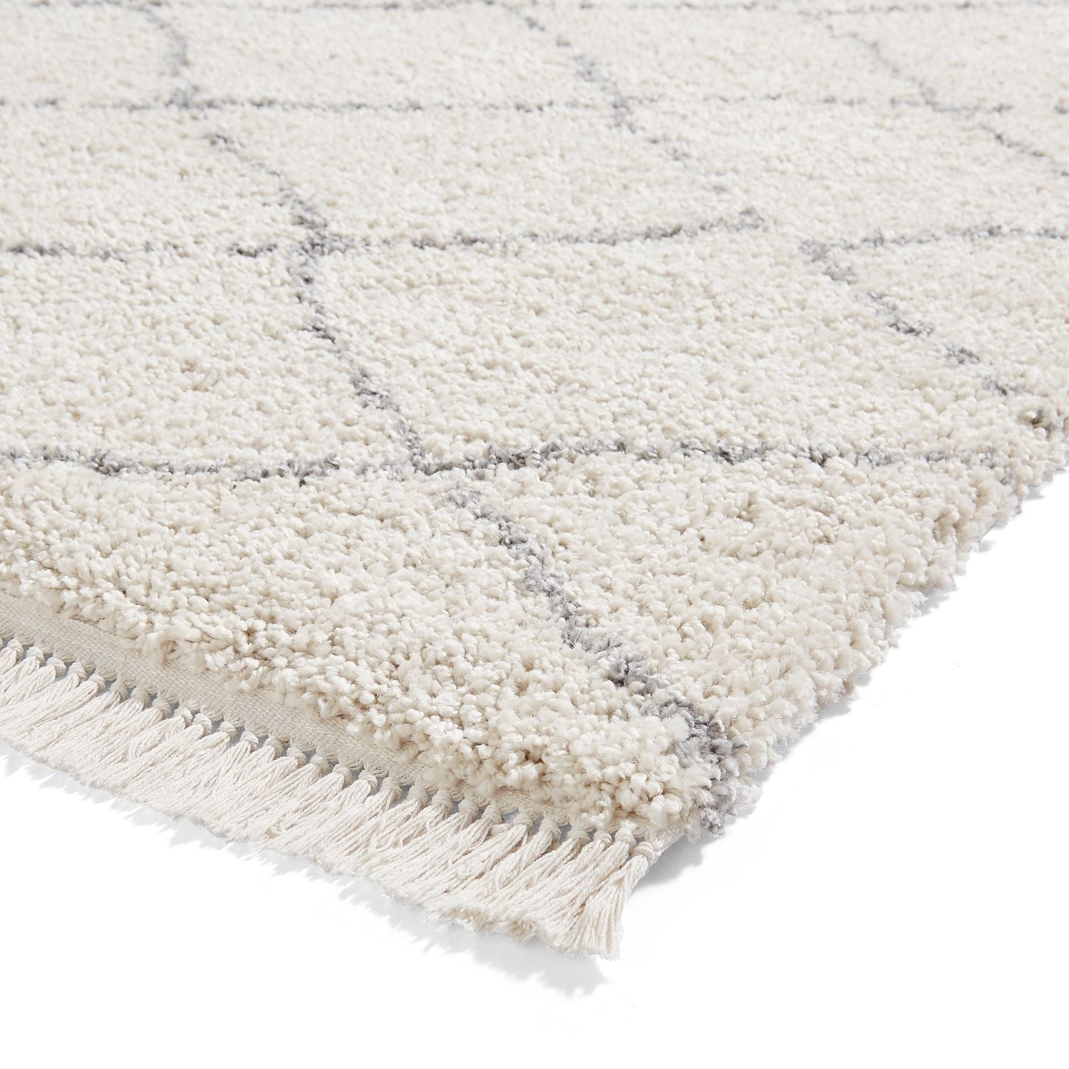 Featuring a classic diamond pattern in soft grey on a cream backdrop, this rug reflects the timeless aesthetic of traditional Berber rugs. The fringed edges enhance its boho aesthetic, while the thick, plush texture adds warmth and comfort underfoot. Crafted from polypropylene, this rug is durable as well as stylish.