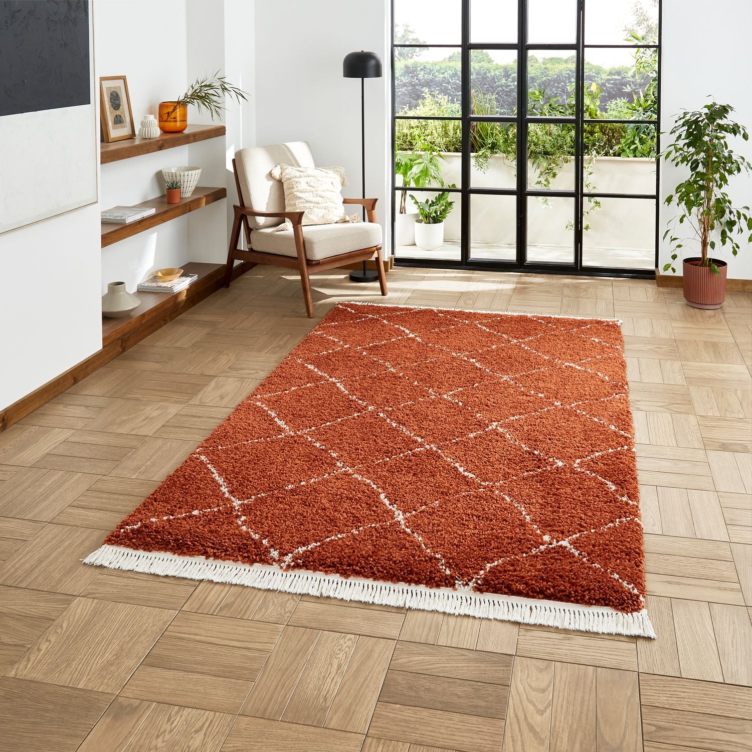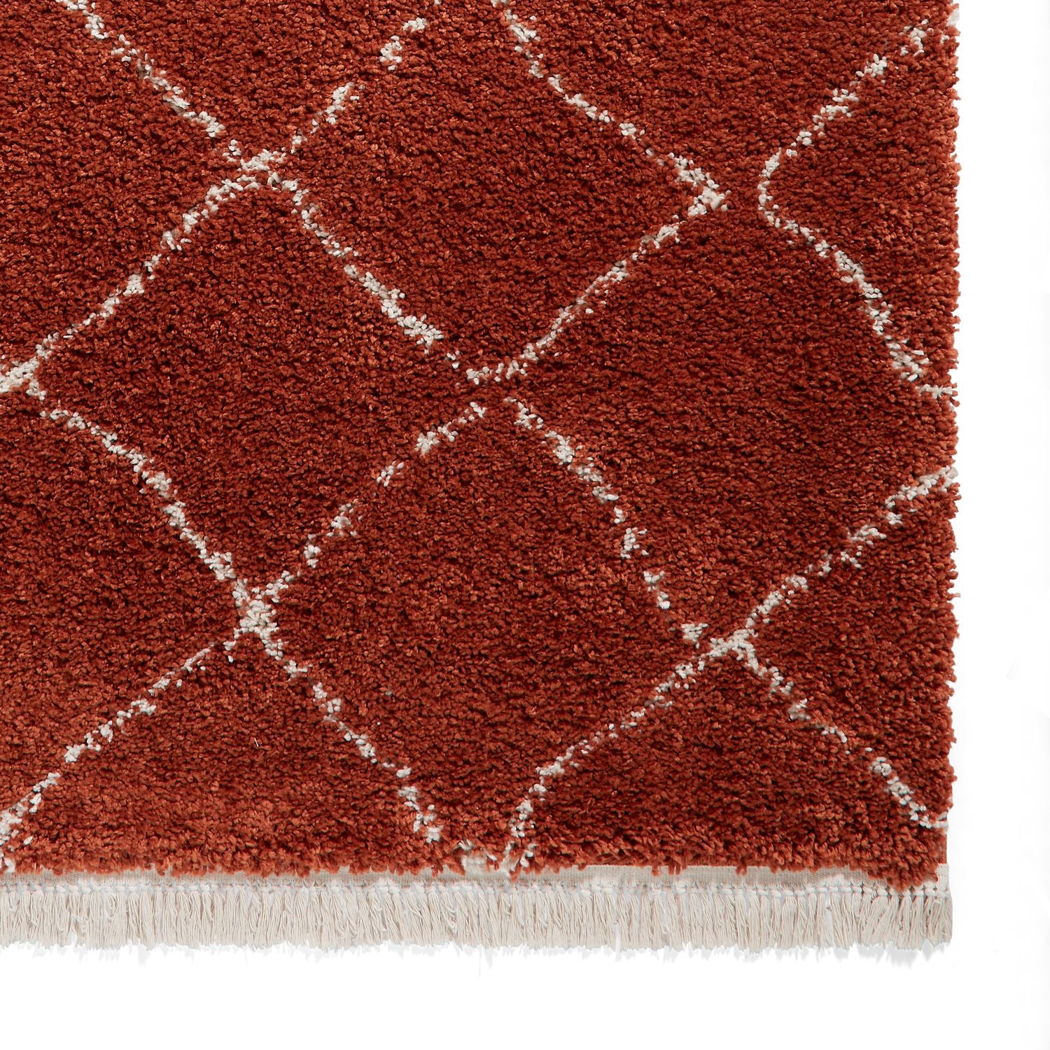 The Boho 5413 Rust Rug is a vibrant take on Berber-inspired design, blending traditional Moroccan style with a bold, modern twist. Its rich rust-orange backdrop, paired with a delicate white diamond pattern, brings warmth and energy to any room.