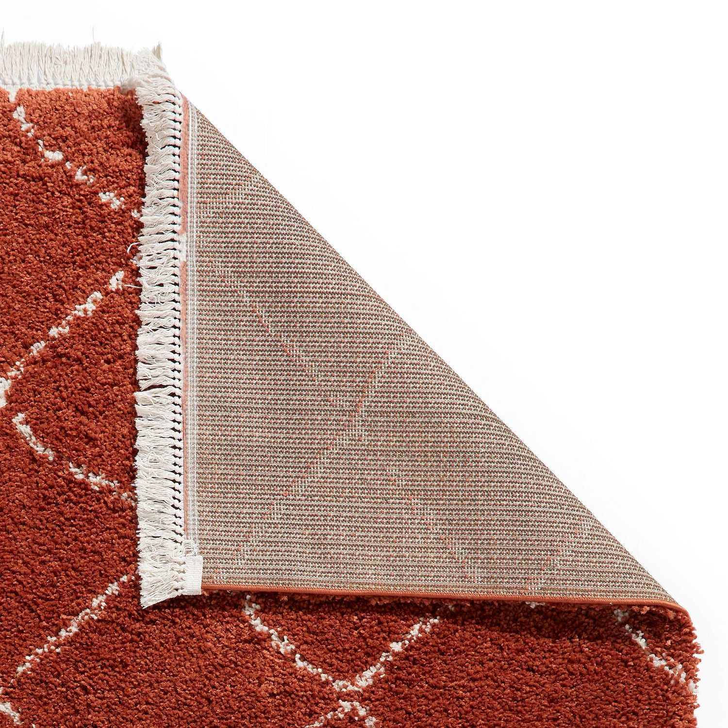 The warm rust tone offers a striking pop of colour, making it a true statement piece for living rooms, bedrooms, or any space in your home. The fringed edges add a relaxed, boho feel, enhancing its charm.