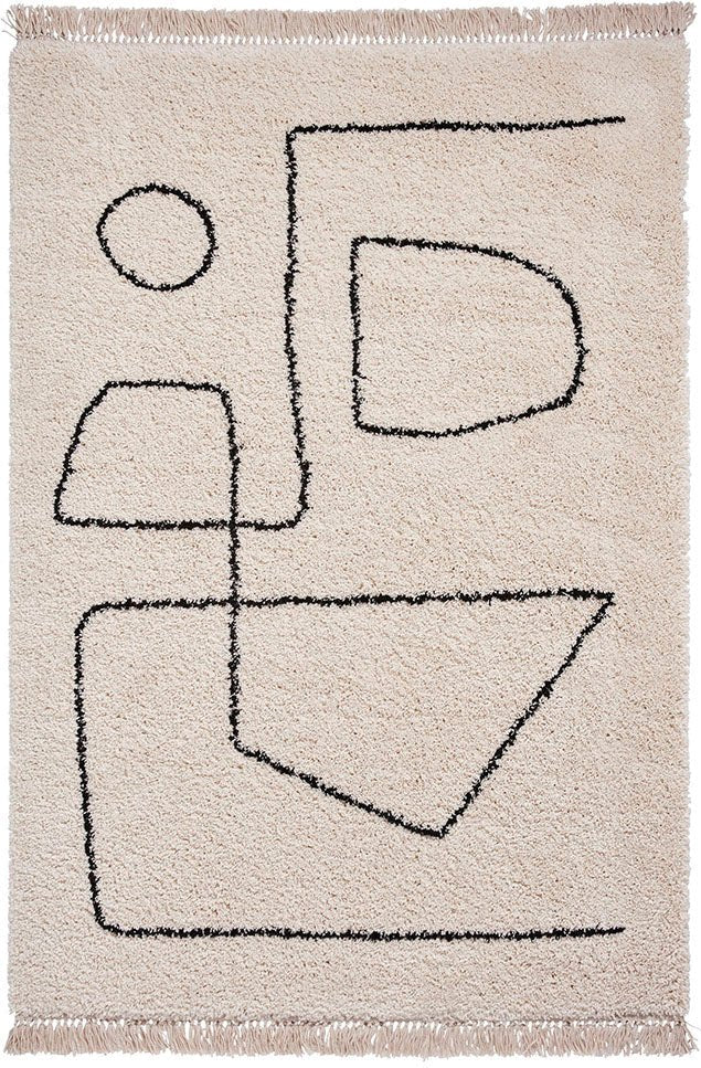 The Boho A474 White/Black Rug is a stunning example of minimalist design with a modern, artistic flair. Its crisp white base provides a clean and bright foundation, while the bold black abstract linework introduces a striking contrast. The geometric pattern adds a sense of depth and intrigue, making this rug a perfect statement piece for any contemporary space.