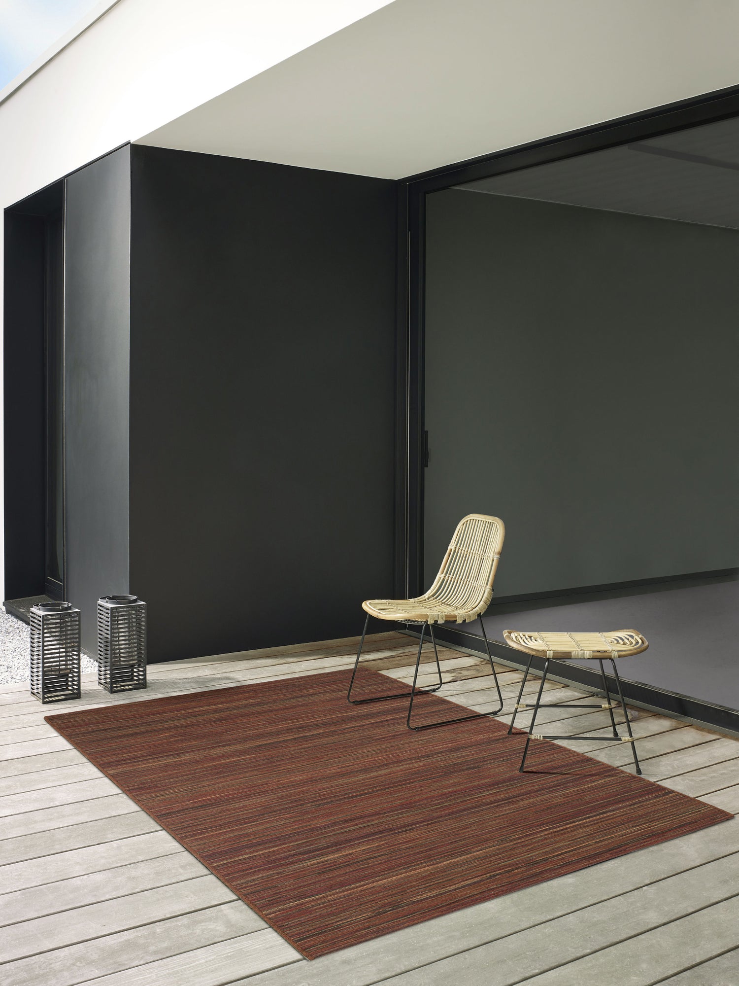 Machine-woven using renewable energy, this flatwoven rug includes an anti-slip backing and is suitable for both indoor and outdoor use. The design suits rustic settings, autumnal colour schemes, or eclectic interiors looking for a touch of heat and texture.