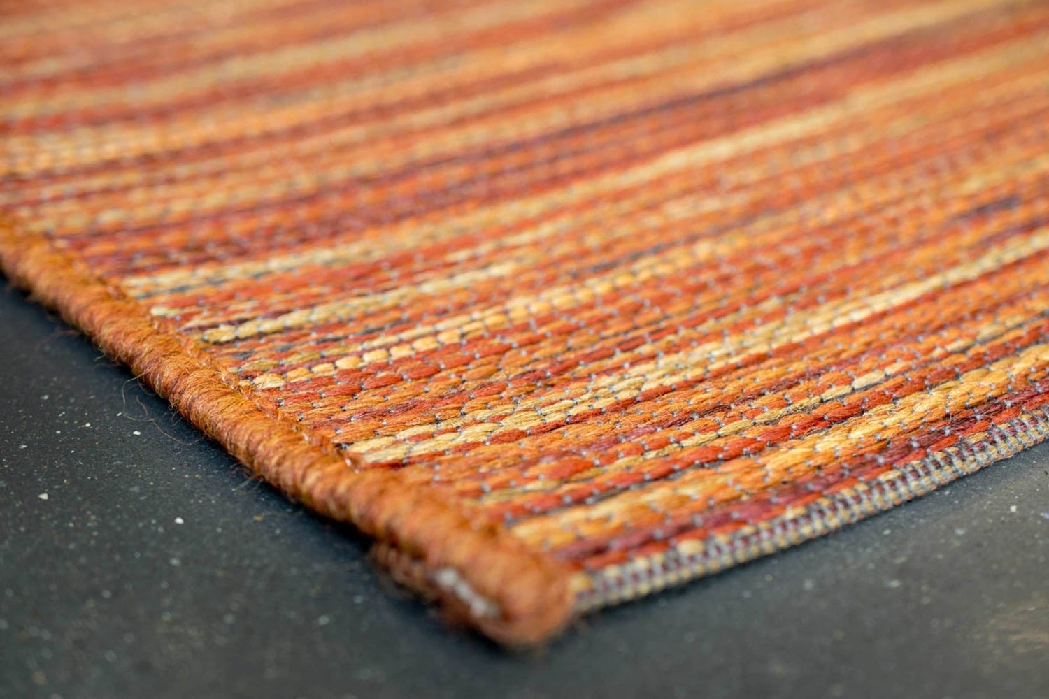 Rich and warming, the Brighton 98122-1000 rug brings together deep terracotta, burnt orange, ochre and hints of charcoal in a finely striped weave. The layered palette creates a sunbaked, earthy effect that feels both grounded and vibrant.