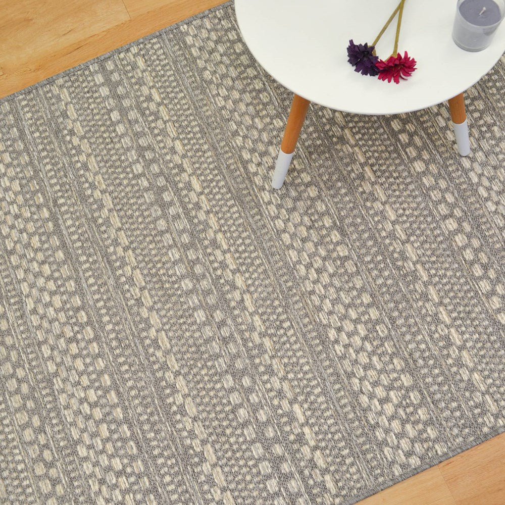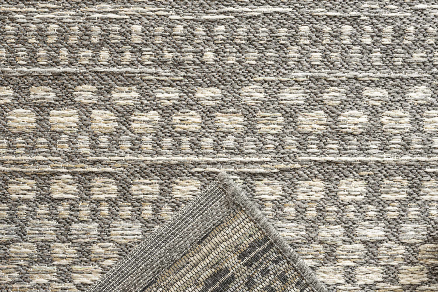 With its woven texture and soft tonal contrast, the Brighton 98570-3036 rug brings subtle pattern and organic charm to any space. Its rows of geometric motifs in warm grey and natural cream offer a handcrafted feel that suits both rustic and modern interiors.