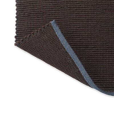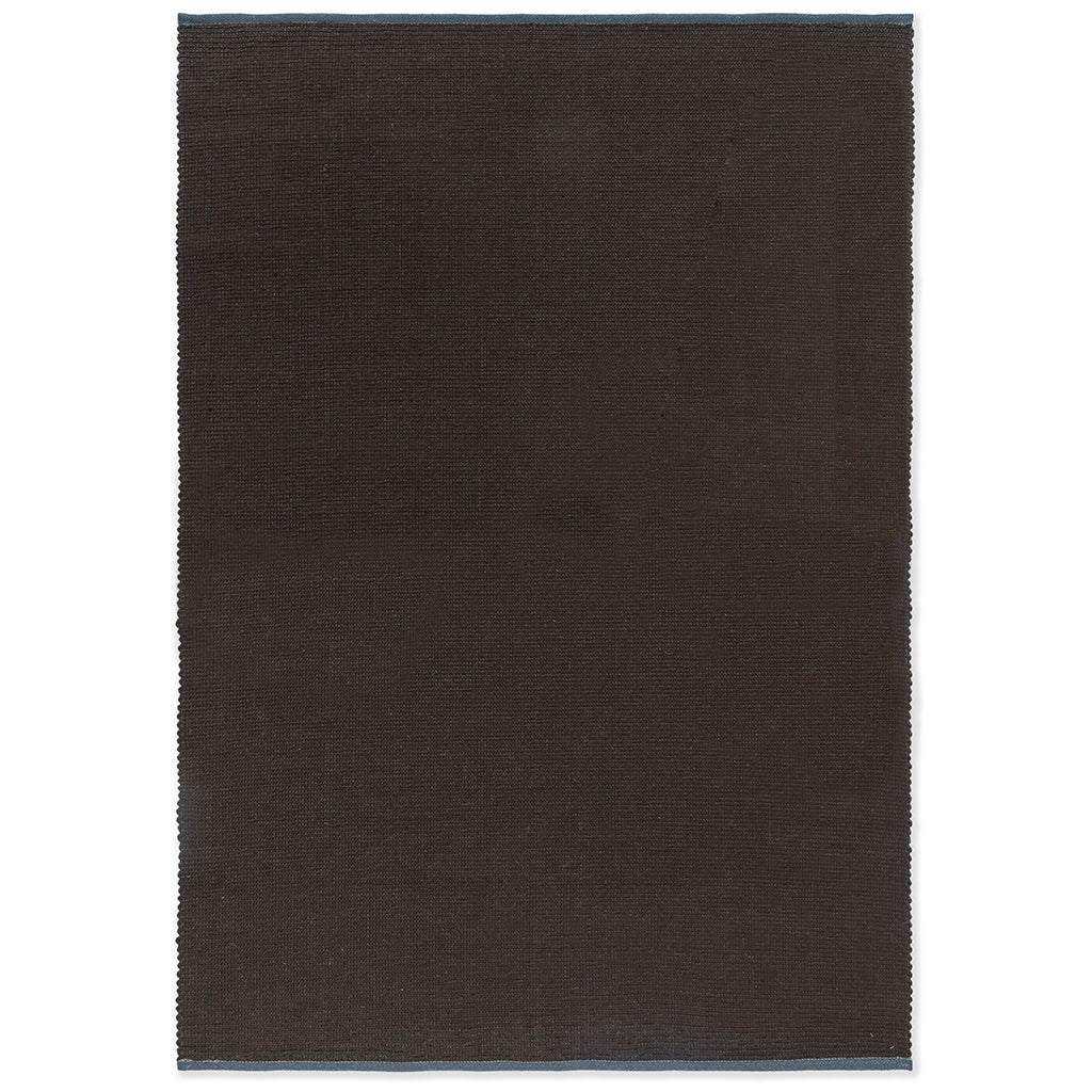 Hand-woven from pure new wool, this reversible rug features a finely textured weave in a deep cacao brown, with a subtle blue edge that gives it a crisp, contemporary finish.