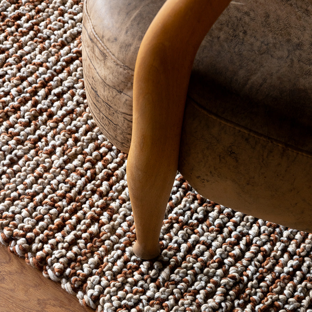 The chunky weave and tonal contrast make it a standout piece, perfect for grounding living rooms, adding warmth to bedrooms, or enhancing a cosy study. Its palette works effortlessly with leather, wood, and other natural materials, suiting both modern rustic and contemporary interiors.