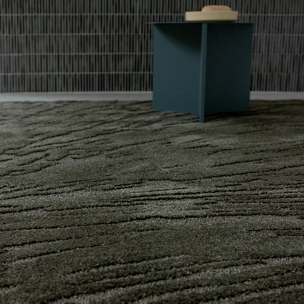 The deep olive green tone brings warmth and sophistication, grounding interiors with a sense of calm. It pairs beautifully with wood, leather, and natural fibres, making it a perfect choice for modern rustic, biophilic, or contemporary organic spaces. The thick wool pile adds softness and resilience, creating a practical and comforting foundation.