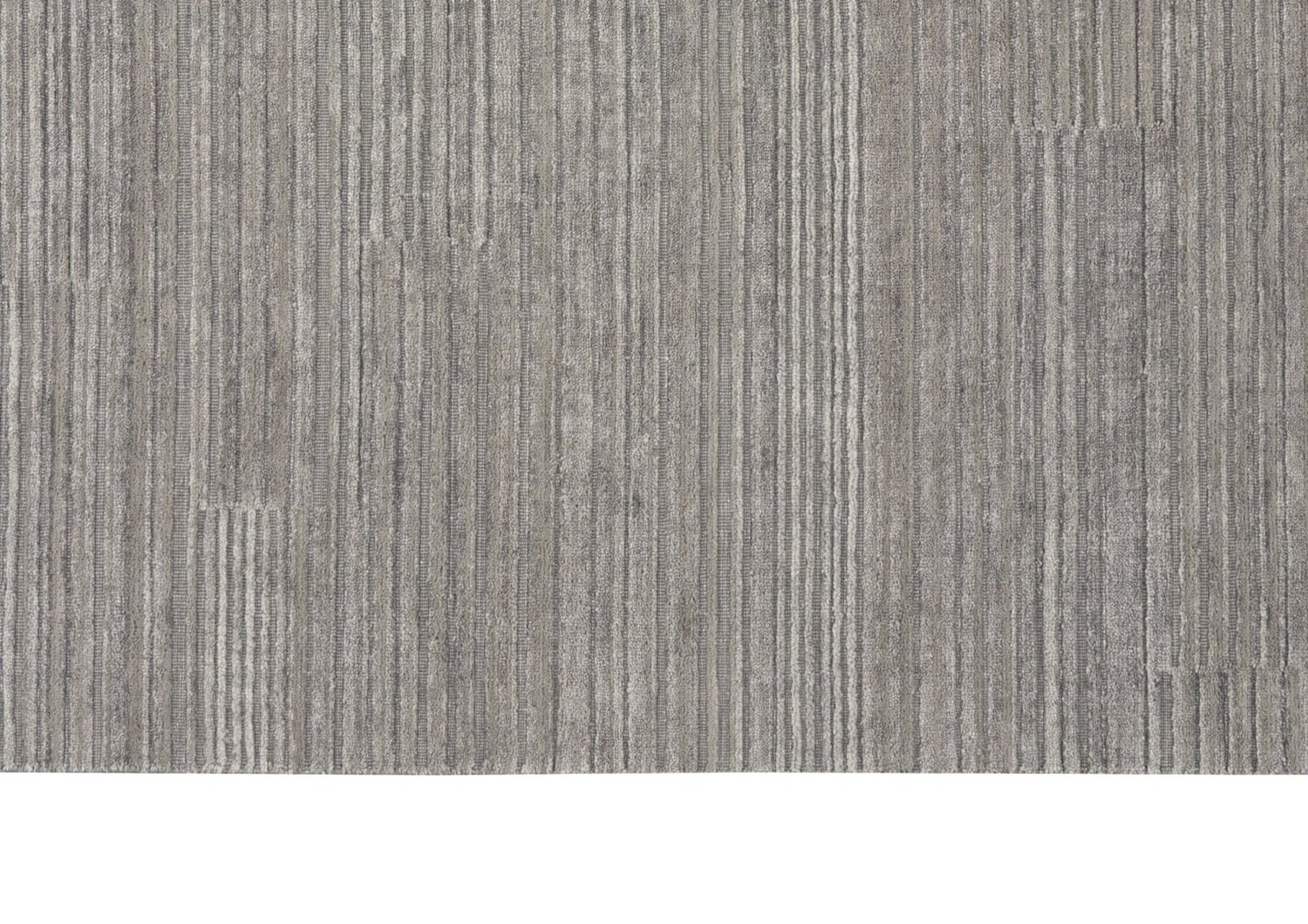 Discover the simplicity of modern minimalism with the elegant Atlantic area rug. A highlight of the Calvin Klein Abyss Collection, this rug showcases a sleek silver-grey linear pattern. Its hand-woven construction results in subtle textural differences within the high-low pile, offering a soft texture and an understated sheen.Crafted from viscose, this rug has a soft, silk-like sheen, ideal for adding elegance to lower-traffic areas such as formal living spaces or bedrooms. A sophisticated choice for refined spaces, where it can be appreciated for its luxurious touch with gentle care.