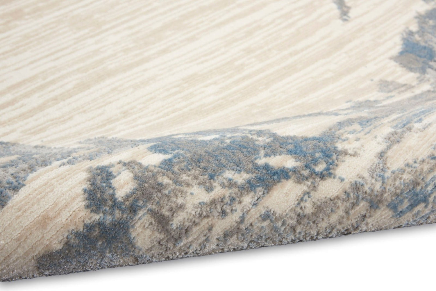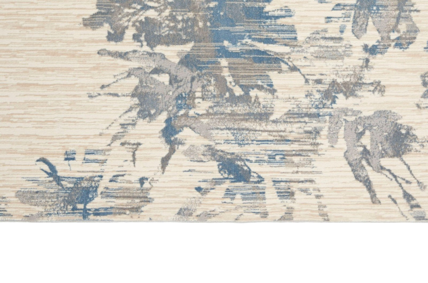 This masterful design from the Calvin Klein Enchanting Collection adds a modern sensibility to the contemporary home. In sophisticated neutral tones of ivory, grey and blue with a high-low cut pile, this abstract floral rug brings textural interest into your living space. A unique choice for your living room, bedroom, or home office in an easy to clean, modern fibre blend.