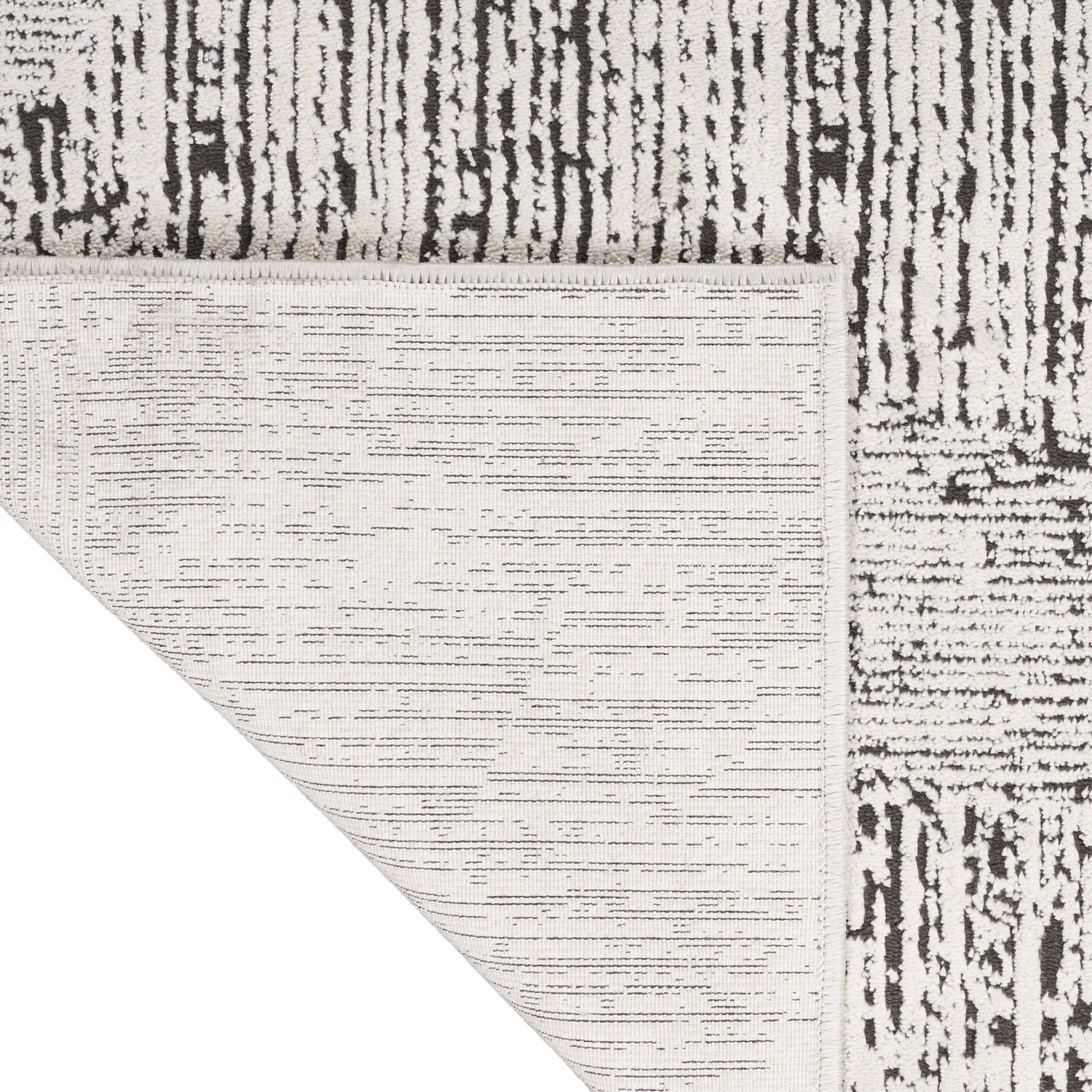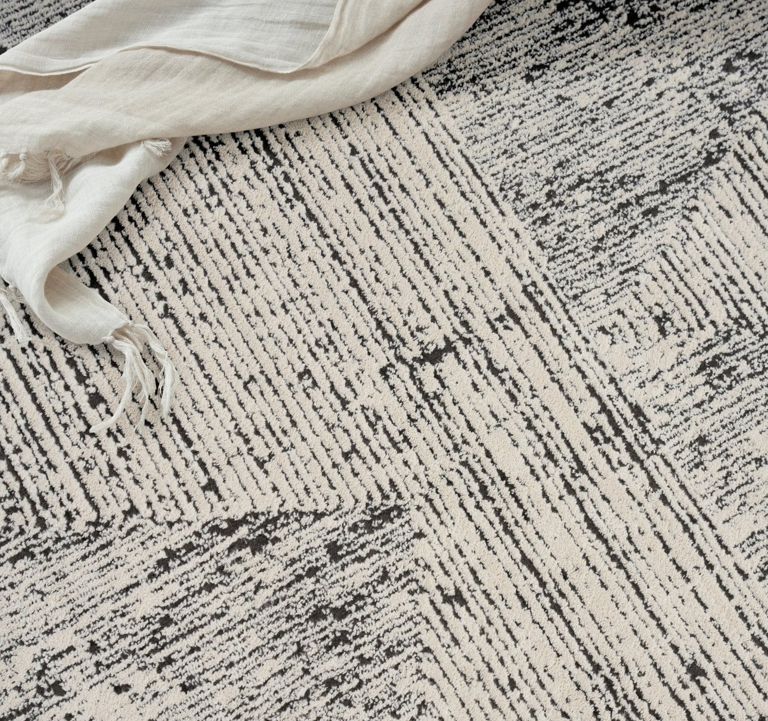 Crafted from high-quality polyester, this rug features a minimalist design with linear overlapping patterns in cream and black, and a subtle texture for visual interest. Its modern sheen will add a vibrant touch to your space.