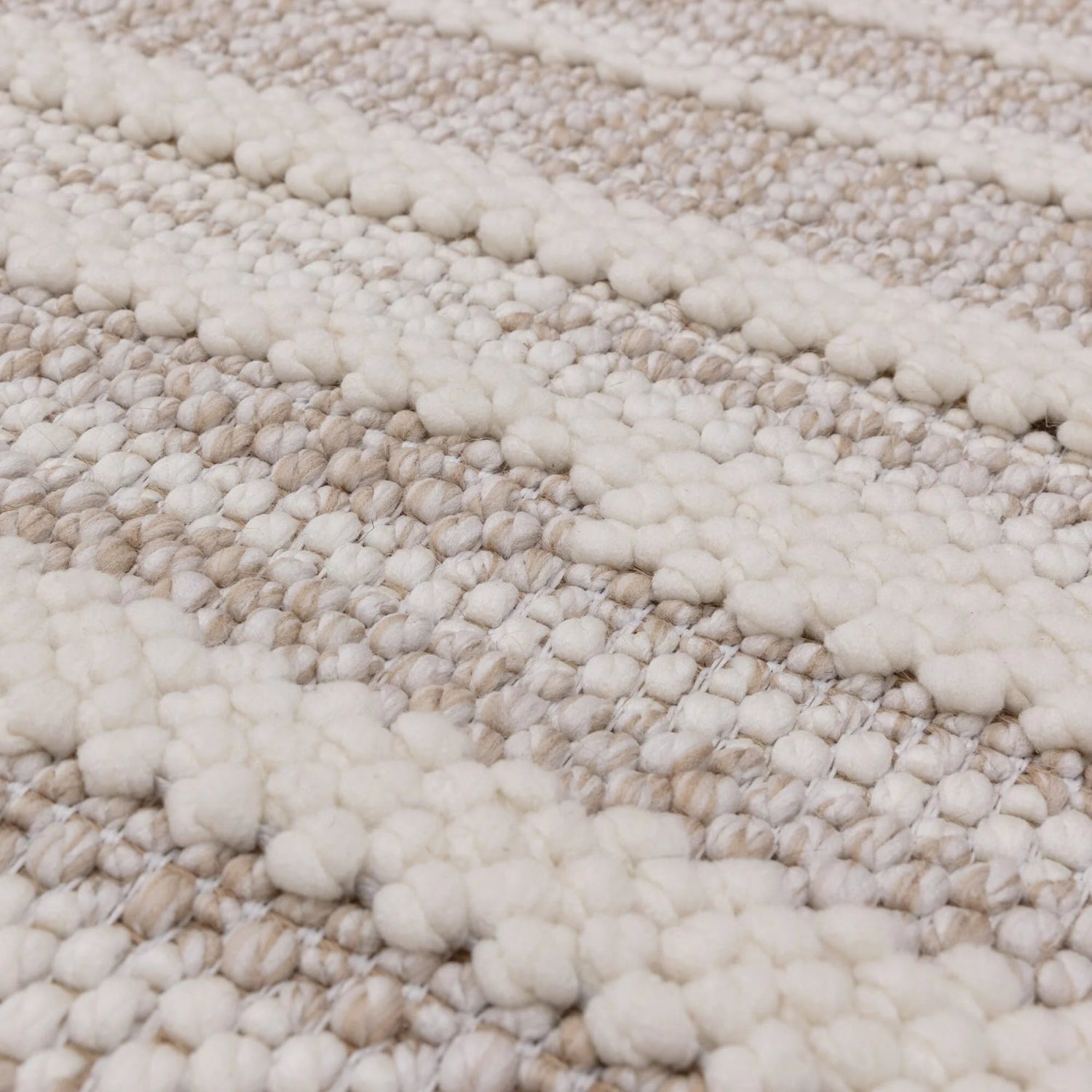 Experience the soft and tactile sensation of our Camber Stripe Sand Rug. Made with precision using polyester and space dye yarns, this rug boasts an organic, natural look. With every loop placed strategically for varying heights and sizes, it's not only visually appealing, but also durable. Transform any space into a cosy and inviting oasis with this rug.