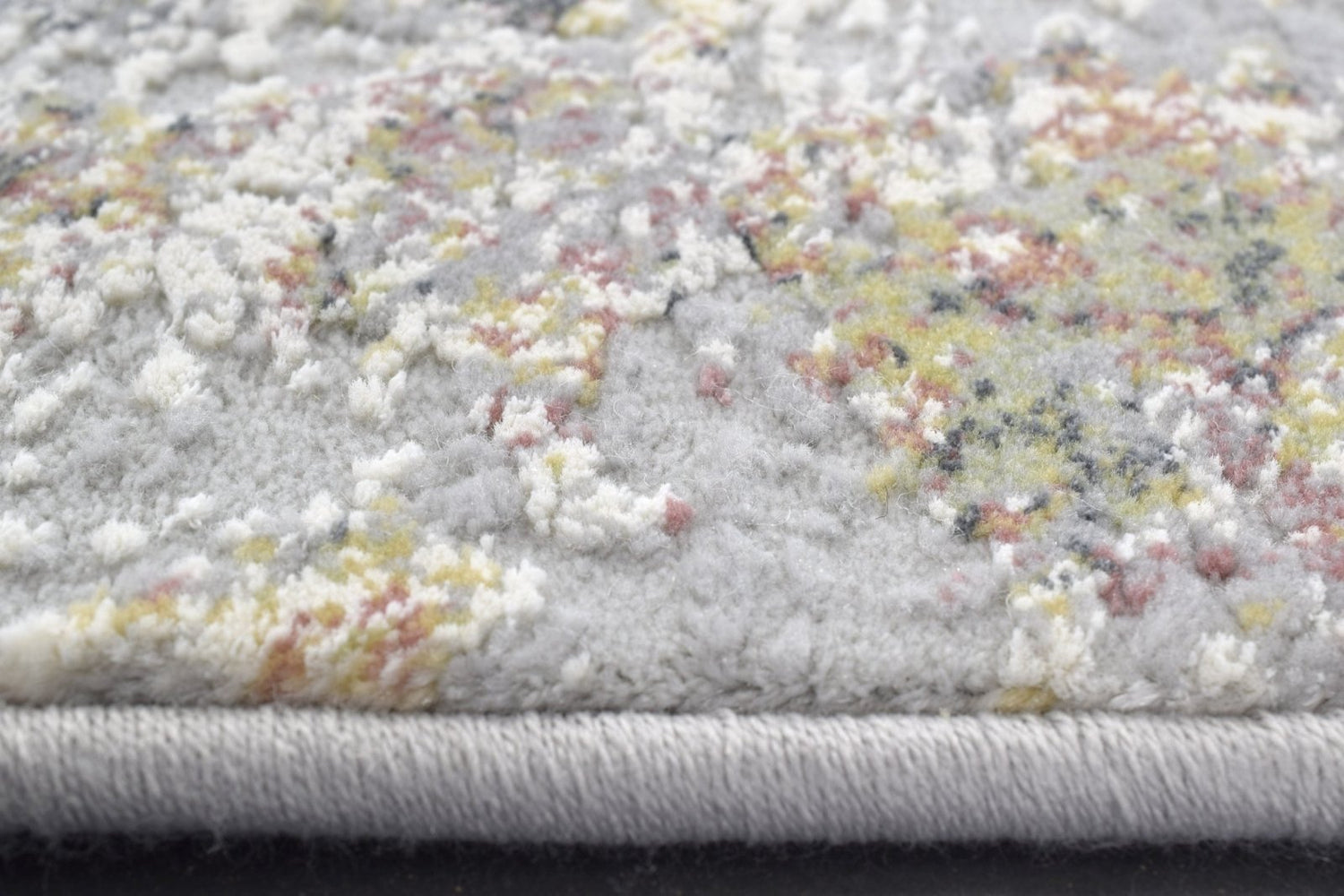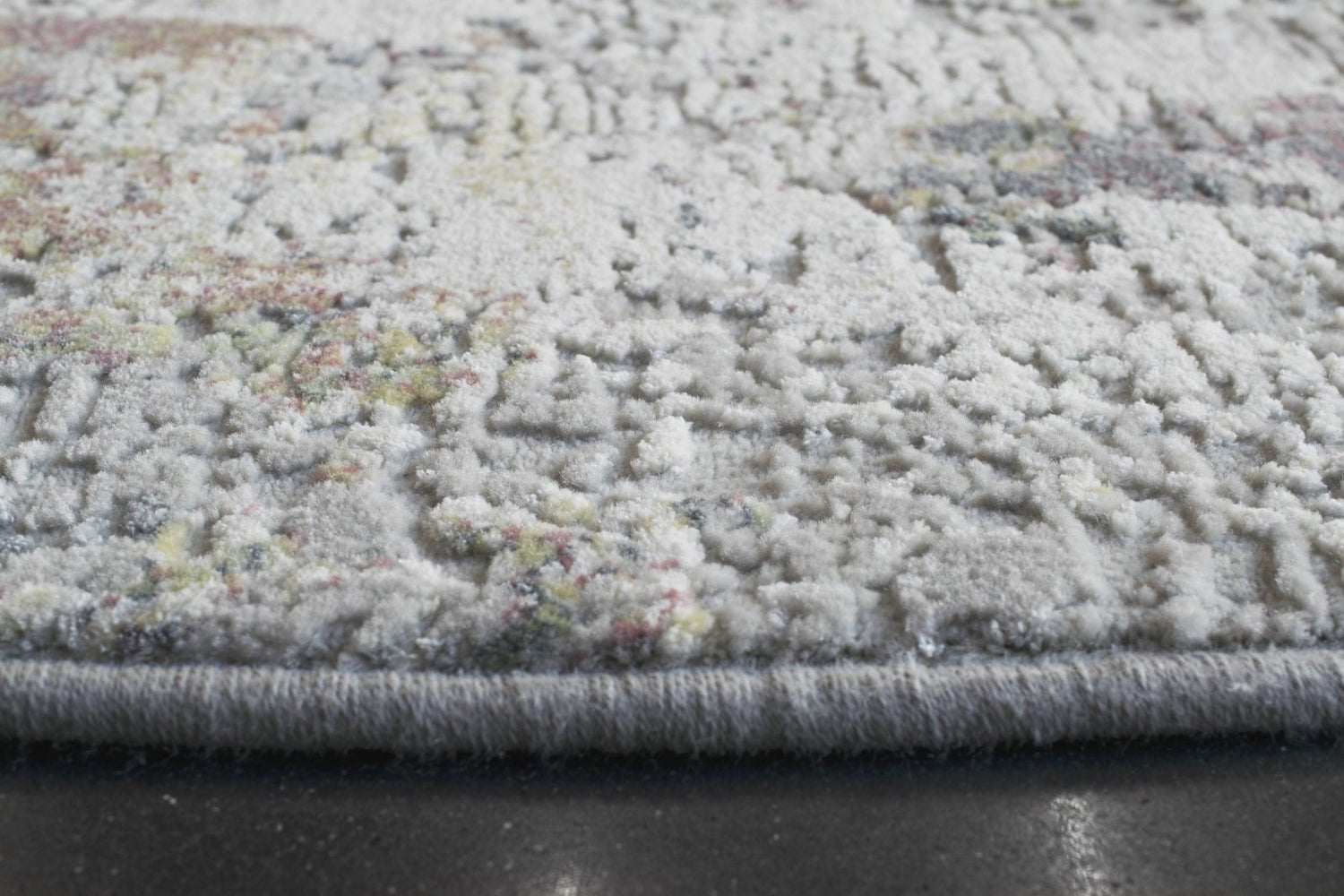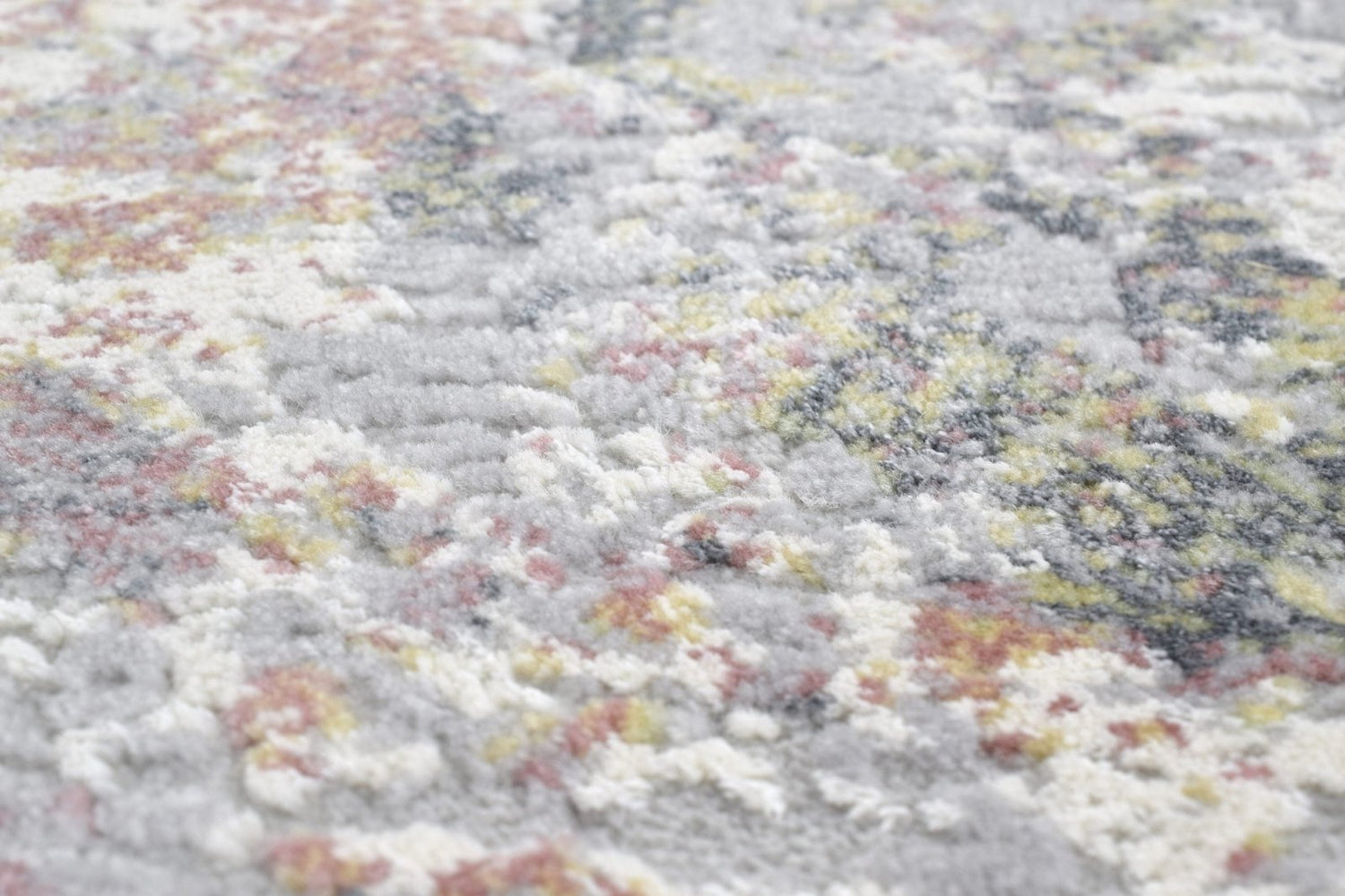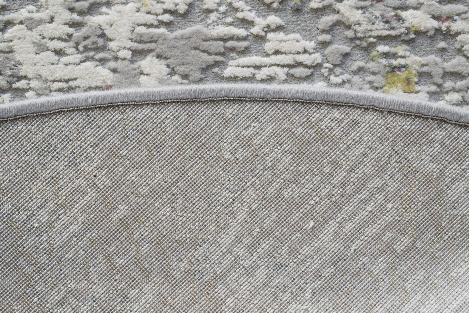 The Canyon 52023-6424 round rug features a softly expressive abstract design in a gentle blend of pale grey, ivory, sage, soft blue, and muted peach. The painterly effect mimics the look of a weathered surface or aged mural, giving the rug a beautifully faded, artistic character. Its circular shape adds a sense of flow and balance, ideal for softening edges in more structured spaces.