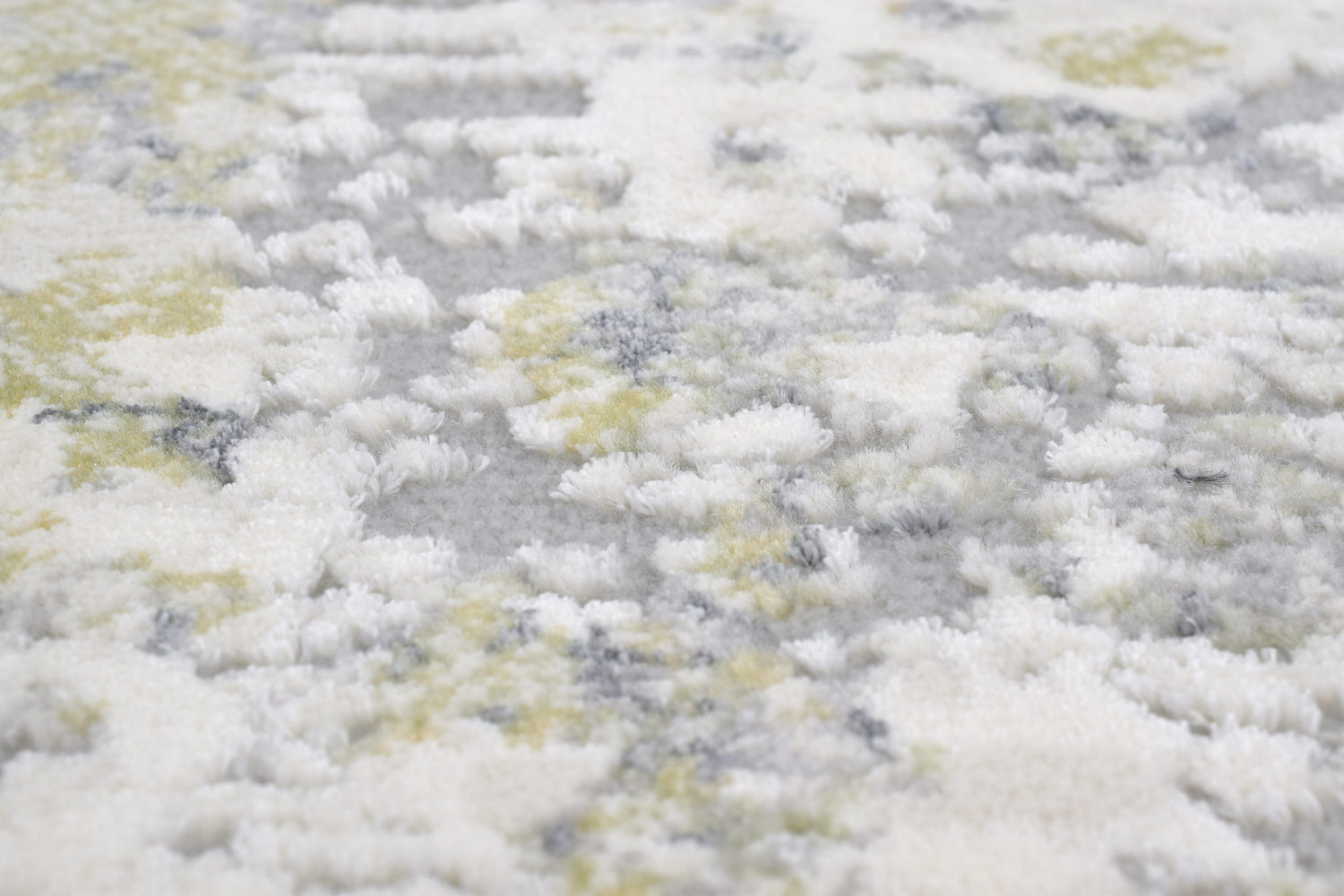 The Canyon 52023-6444 rug brings a light and botanical feel to your space with its soft blend of ivory, pale grey, sage green, and subtle hints of lemon yellow. The abstract pattern feels airy and organic, like dappled sunlight or foliage against a textured surface. Its fresh, nature-inspired palette adds brightness without overwhelming, making it an easy yet eye-catching addition to any room.