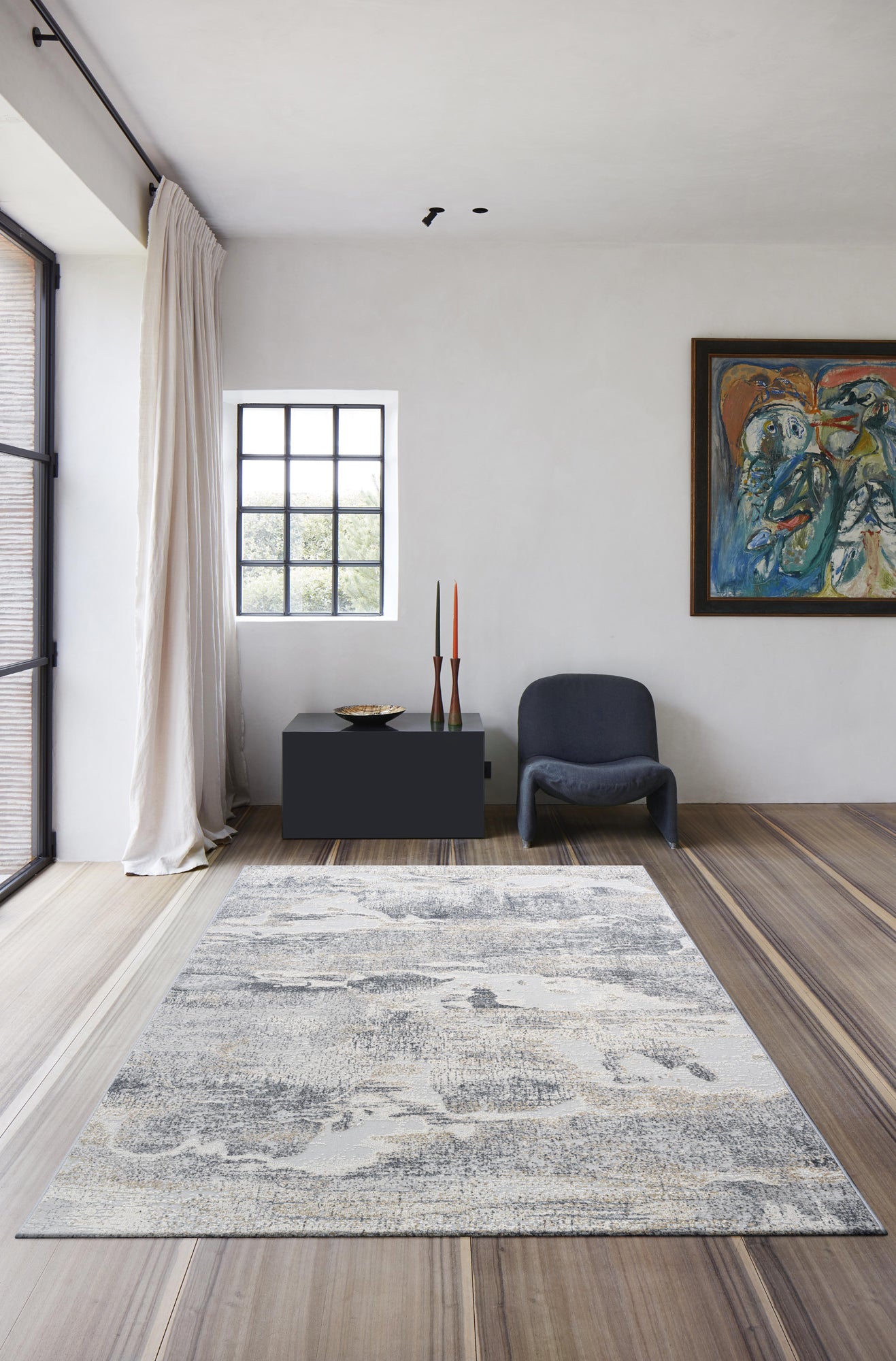 Ideal for calm, tonal spaces or modern interiors with a natural edge, this ivory and grey abstract rug works beautifully with stone floors, soft fabrics, and warm wood accents. Whether used in a bedroom, hallway or living space, it adds a layer of quiet sophistication without overwhelming the room.