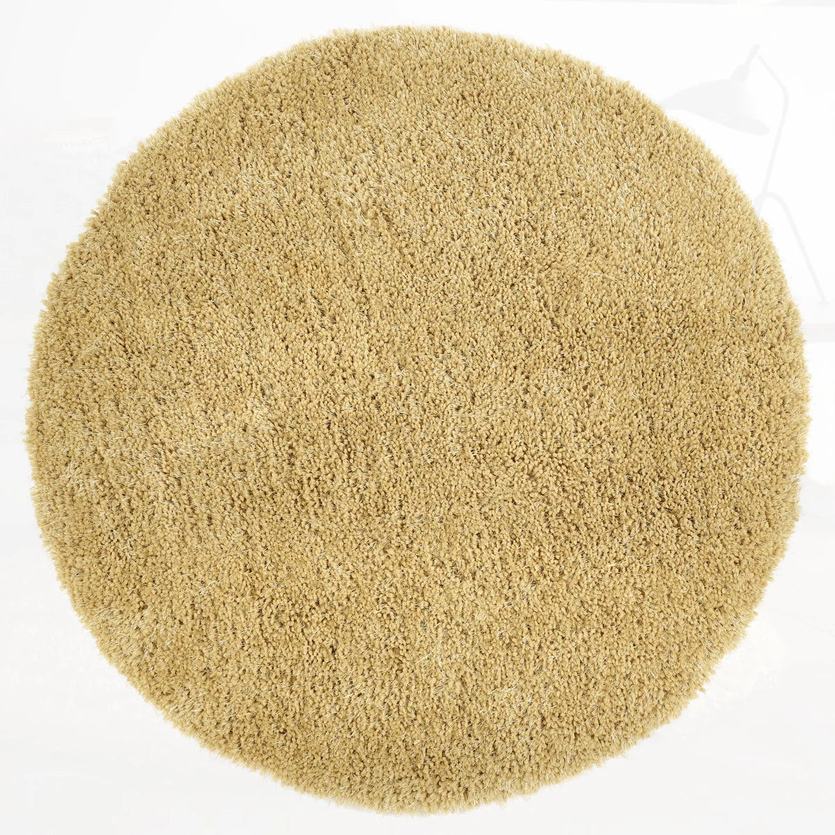 The shaggy pile is hand-tufted from 100% polyester, giving it a pleasantly soft feel underfoot with a light, relaxed texture. The round shape helps balance straight lines in the room, making it ideal for anchoring seating areas or adding gentle curves beside the bed.