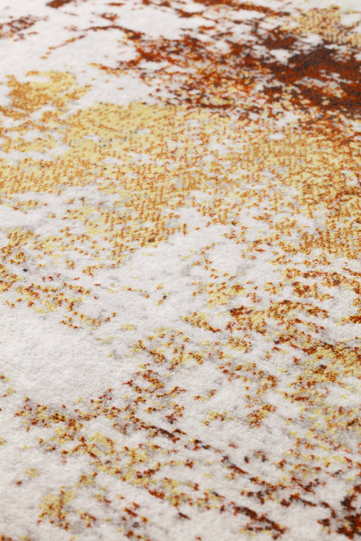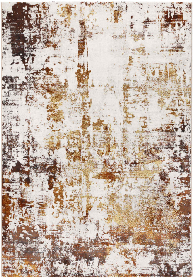 The City 410299/991 Rug showcases a bold abstract design, featuring a distressed mix of warm gold, bronze, and brown tones against a cream background. This striking colour palette creates a sophisticated, textured look that adds depth and character to any space.