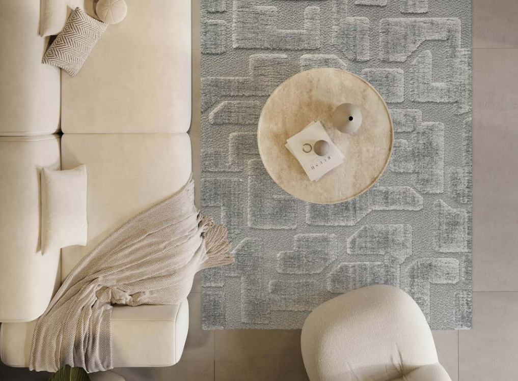 The Cleo 013-0036-5171 Rug introduces a crisp geometric layout in tonal shades of cool blue. Its raised cut-pile pattern plays with depth and shadow, creating a bold sense of structure while remaining soft underfoot. The grid-like layout evokes architectural forms with a modern twist.