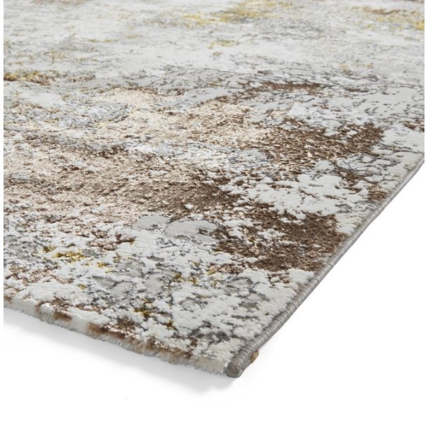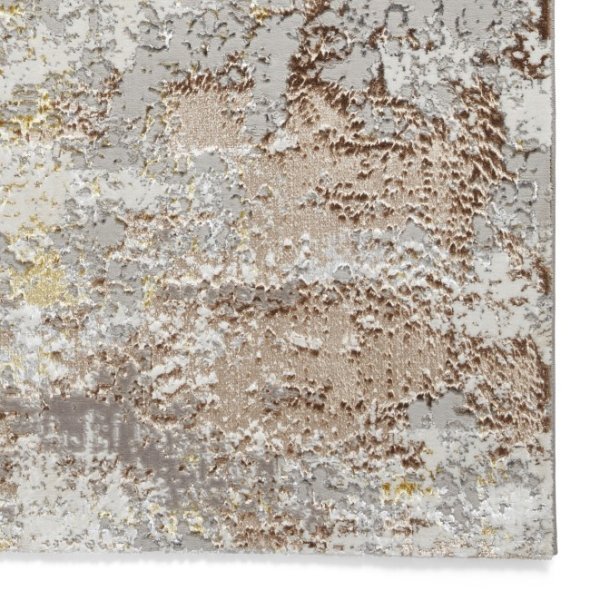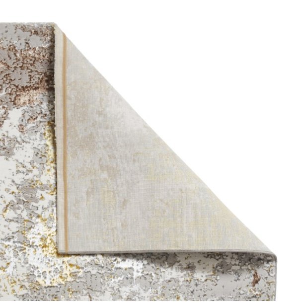 The Creation 50179 Gold/Beige Rug brings a luxurious touch to your home with its abstract design and sophisticated palette.