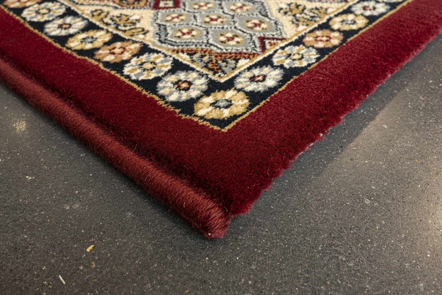 This rug features a bold combination of deep reds, blues, and earthy tones, woven into a striking geometric pattern. The intricate design is inspired by traditional tribal rugs, making it a perfect choice for those who appreciate patterns full of history and character. Machine-made from durable polypropylene, this rug is soft underfoot and built to handle everyday use, ensuring it will remain a beautiful focal point in your home for years to come.