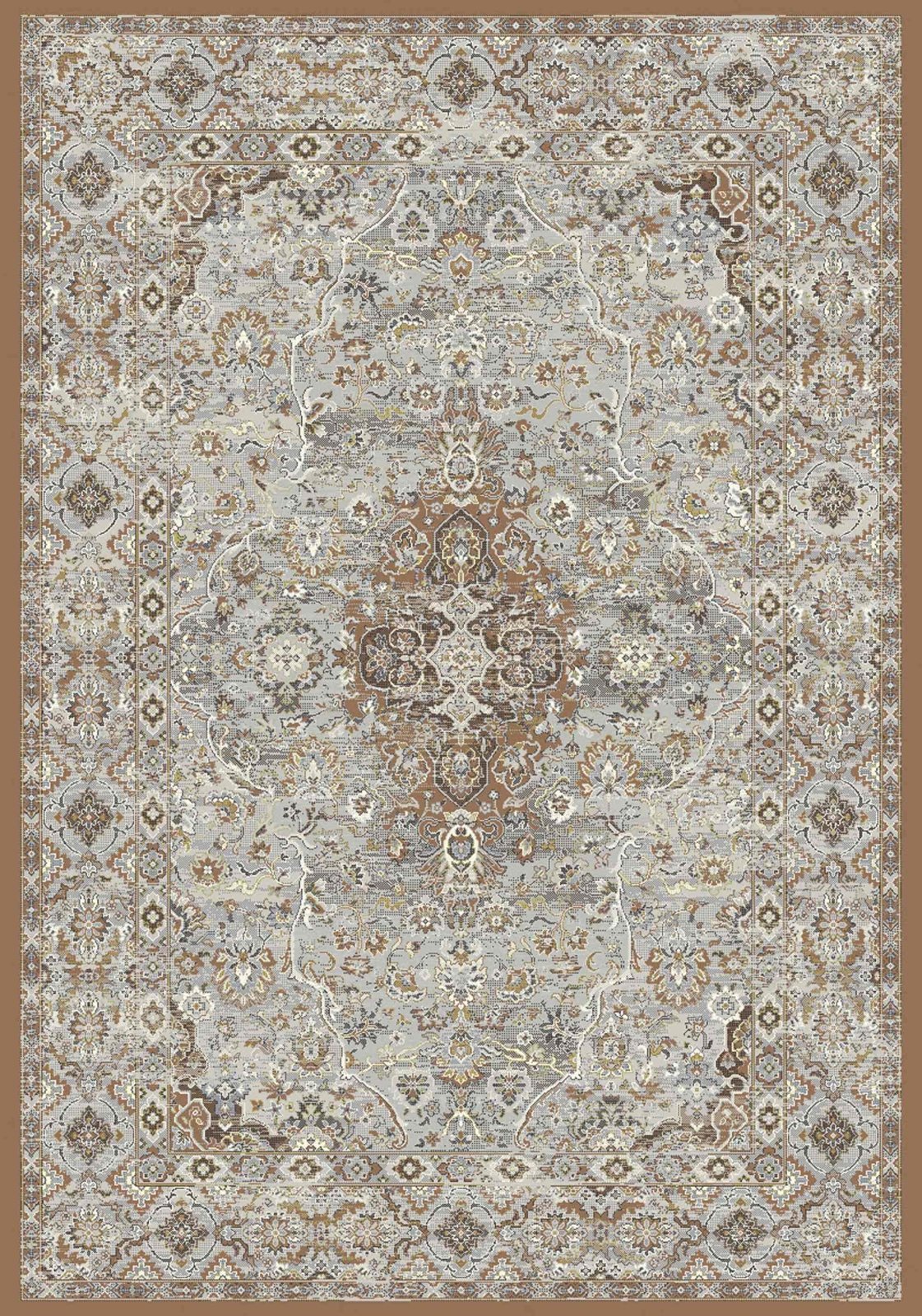 The Da Vinci 0275-9285 Rug presents a classical Persian-inspired design, with a large central medallion framed by scrolling floral motifs and corner spandrels. The layout blends symmetry with soft detailing, creating a composed, elegant presence.