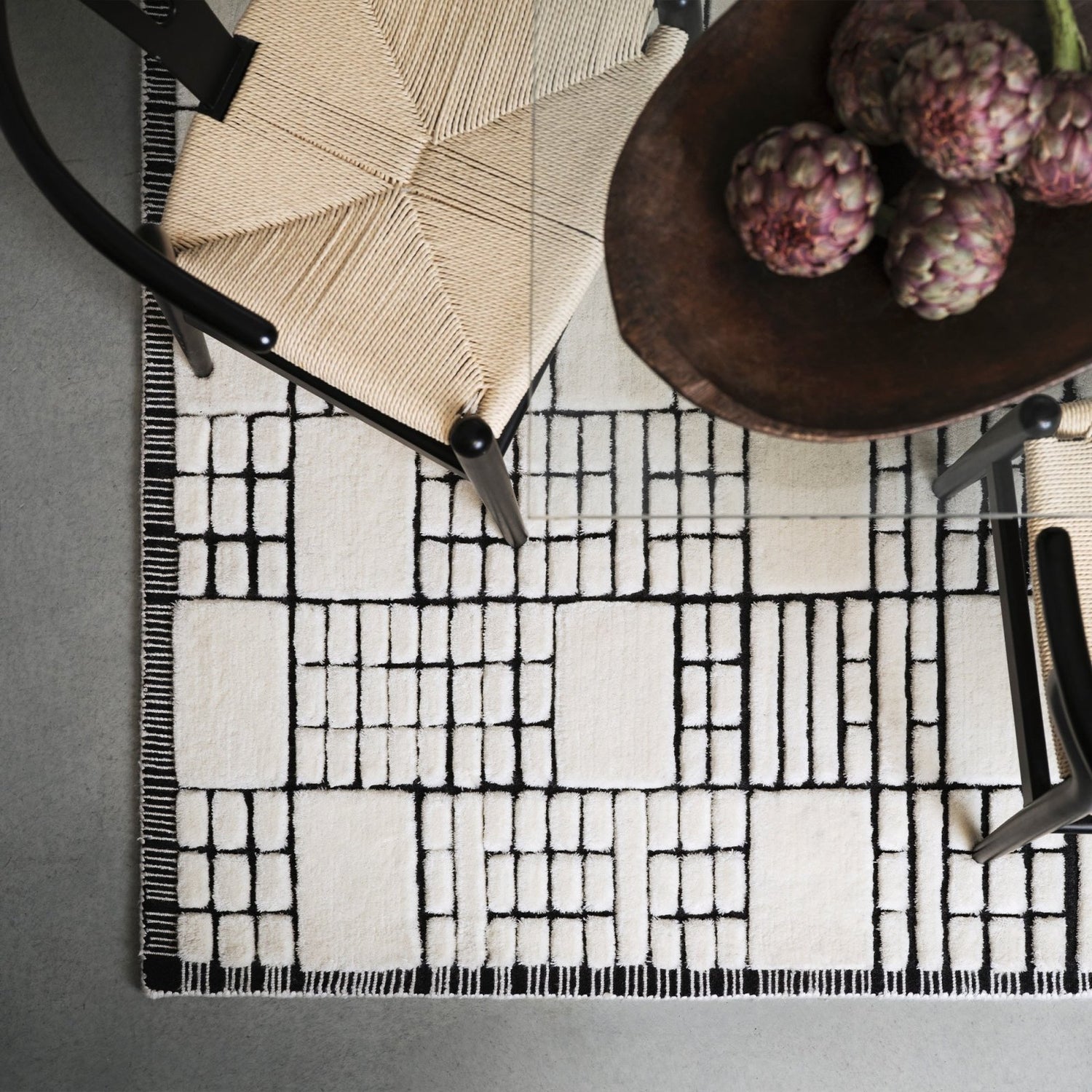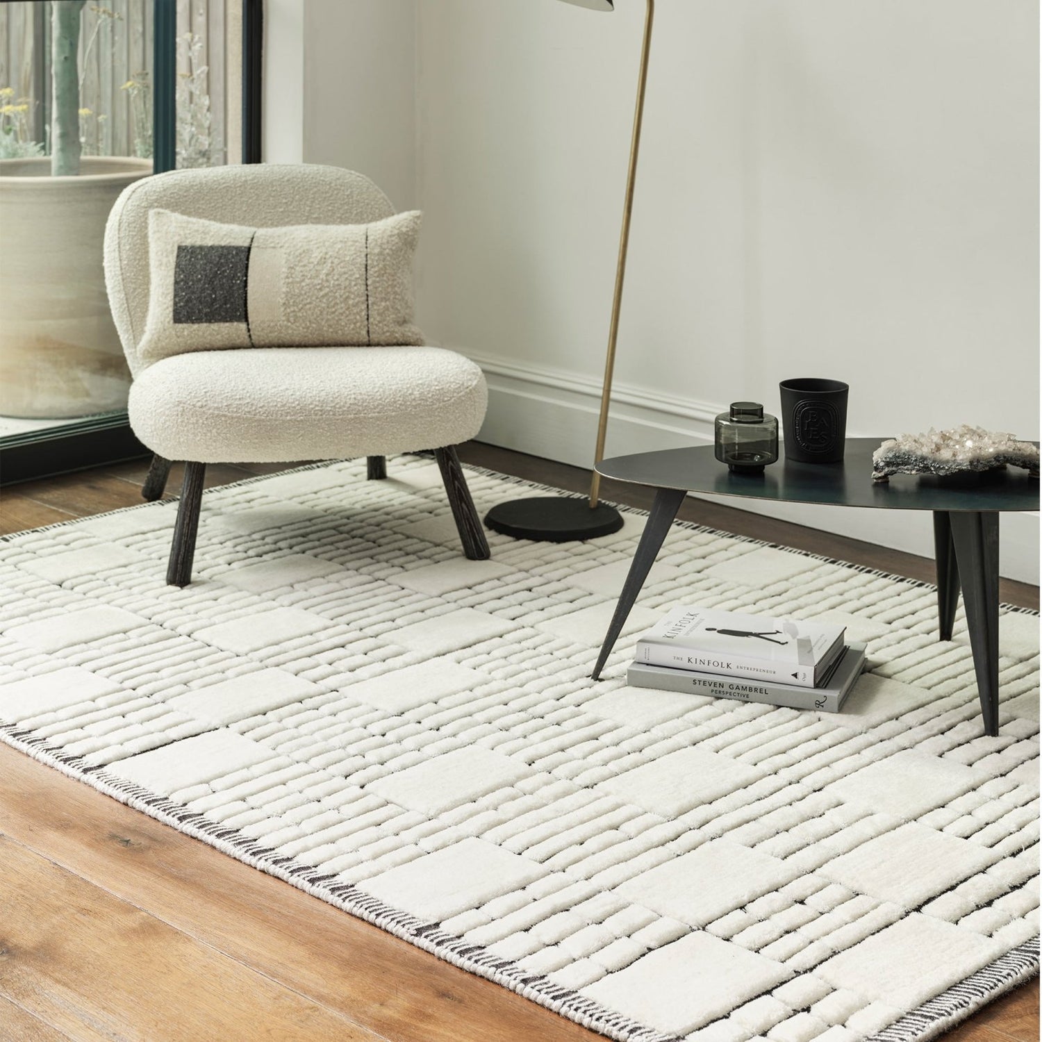 Hand tufted in India from 100% New Zealand wool, the Empire collection of rugs features an intruiging high-low pile and a contemporary grid-like design. This monochrome rug makes a striking statement in your living space, drawing attention as a focal point.