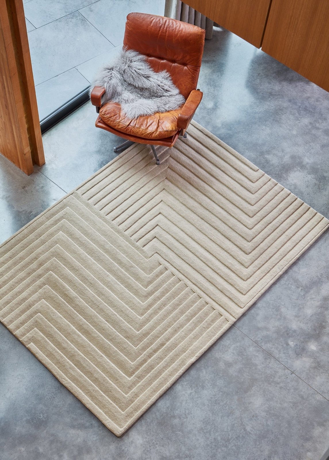 Sharp hand carved geometric lines against a high density pile creates an eye catching three dimensional effect. Hand tufted from 100% New Zealand wool with a heavyweight finish.