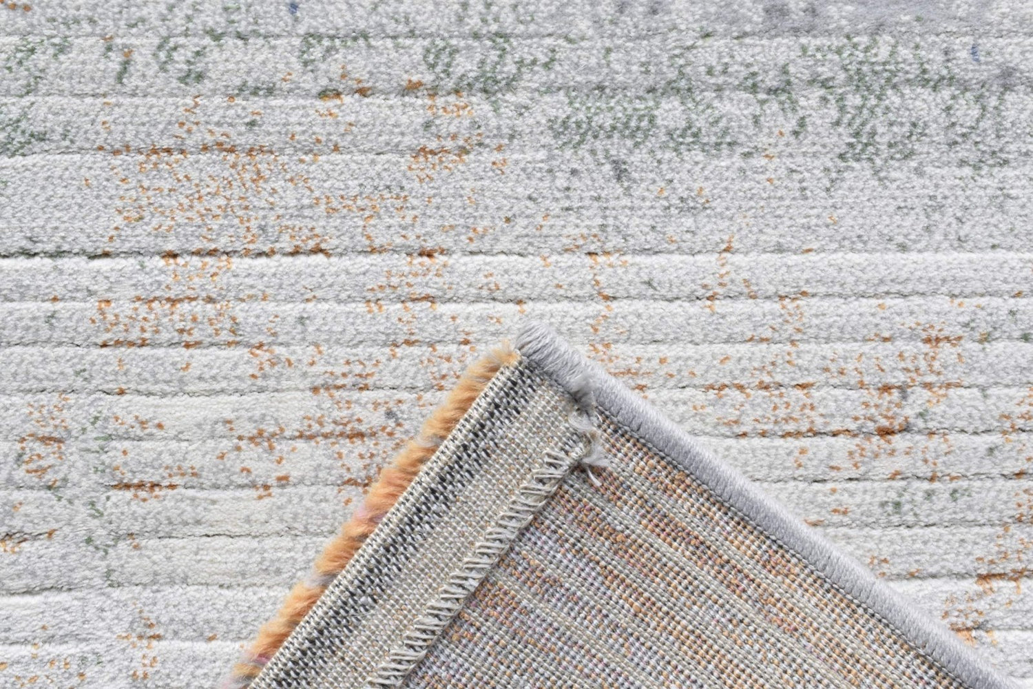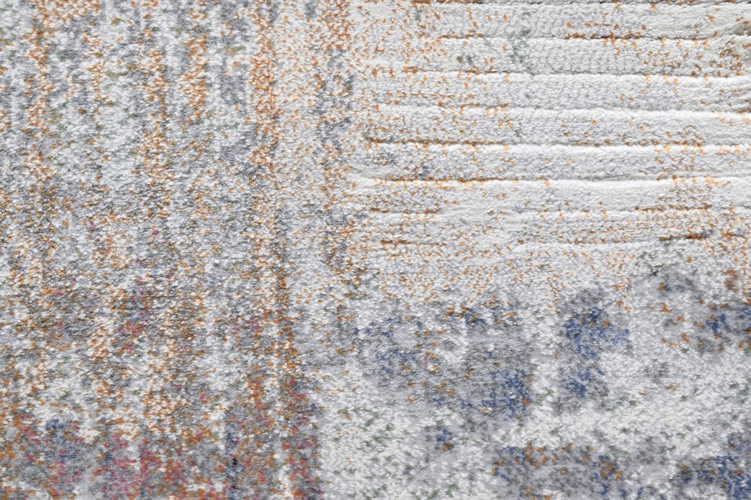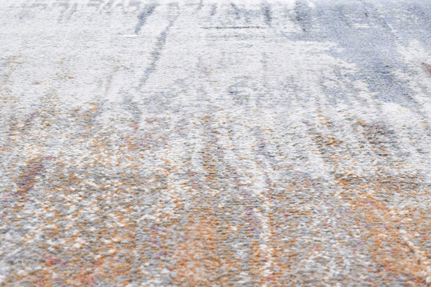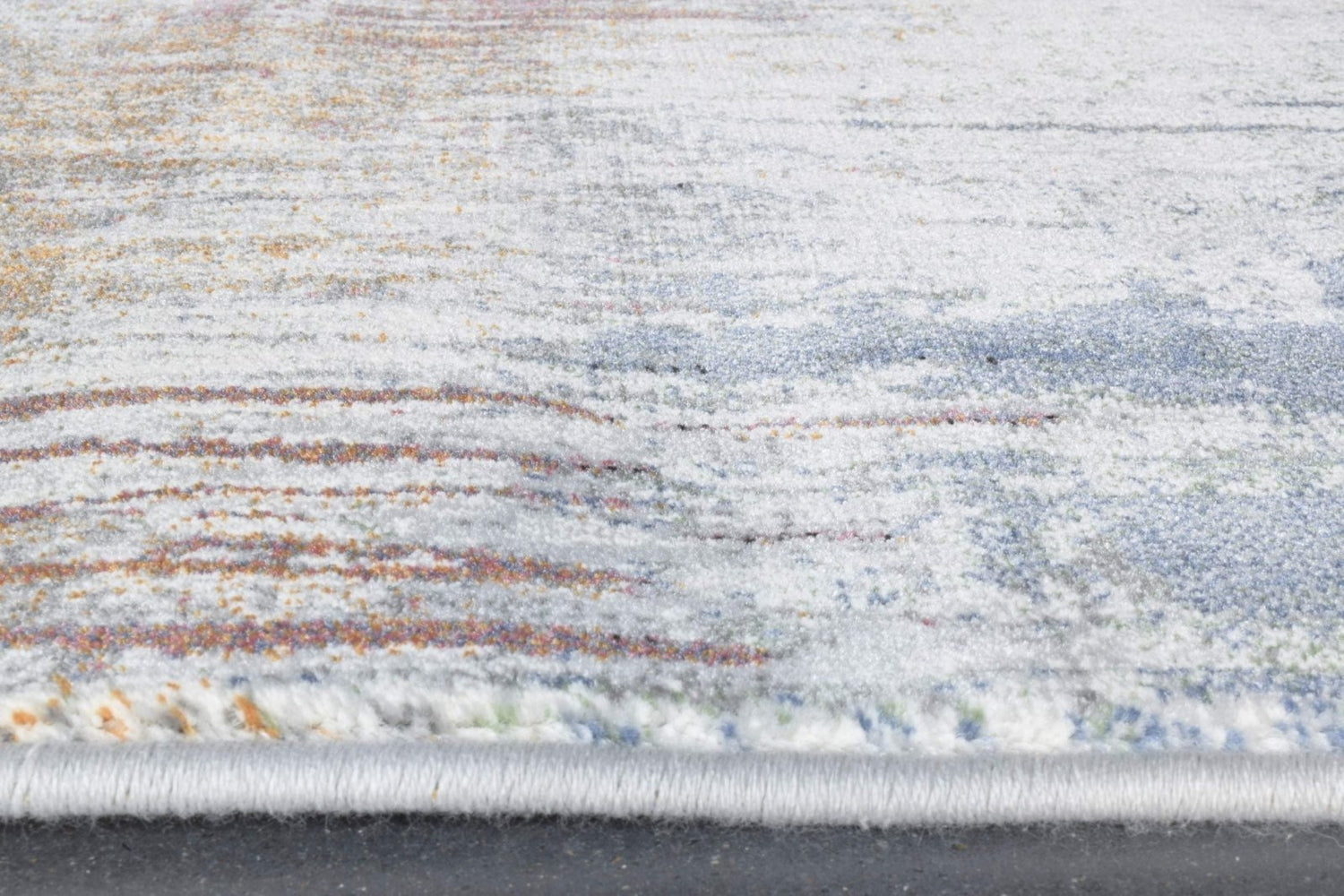 The Galleria 063-0393/6656 Rug features a beautifully abstract linear pattern, with soft layers of cool blue-grey, muted green, ivory, and warm terracotta tones. Its design has a weathered, painterly effect, giving the rug a sense of movement and depth that adds character to any room without overwhelming the space.