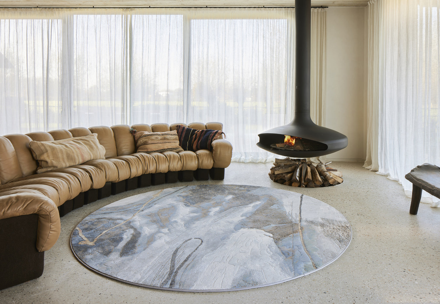 Perfect beneath a round dining table, in a reading nook, or as a statement piece in a living room, this rug complements modern, coastal, and nature-inspired interiors with ease.