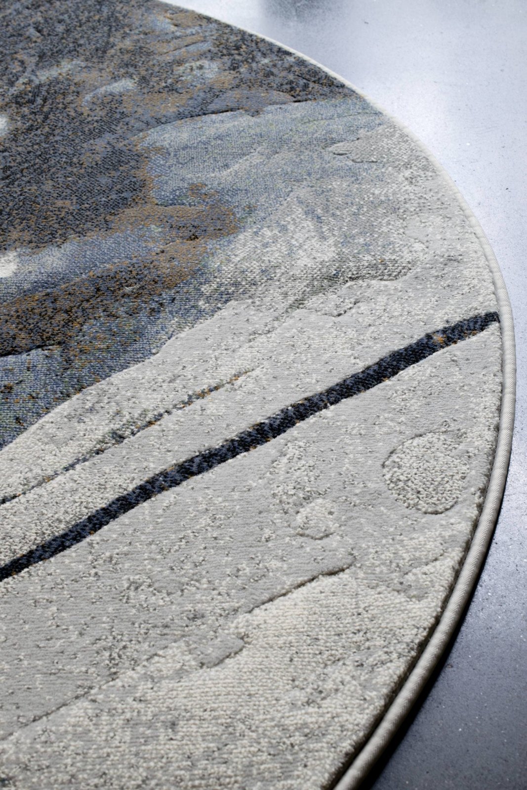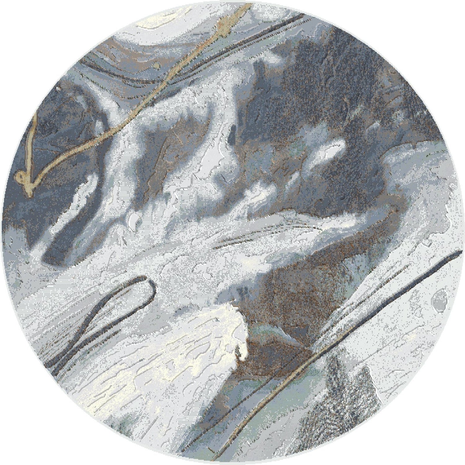 The Galleria 063-0529-2626 Round Rug brings a sense of movement and tranquillity to your home with its swirling abstract design. Layers of soft blue, stormy grey, and earthy beige are lifted by crisp white sweeps and delicate golden lines, creating the effect of flowing water or polished natural stone. Its round shape softens interiors and draws the eye, making it a striking centrepiece.