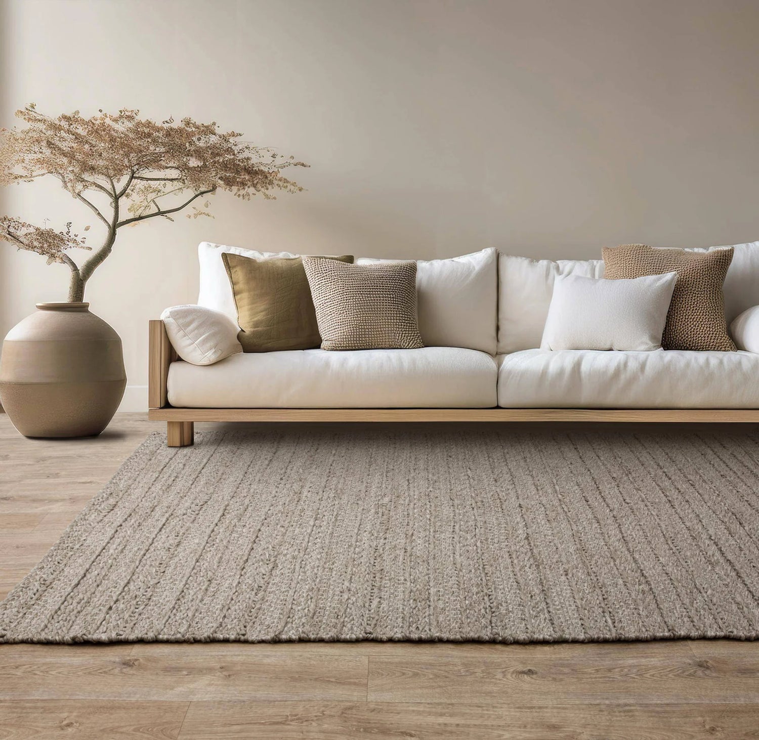 This woven rug is designed to add a touch of style and versatility to your space. Its subtle weave details bring a refined texture, making it an adaptable choice for a variety of interiors. Perfect for modern households looking to enhance their decor with a practical, stylish accent.
