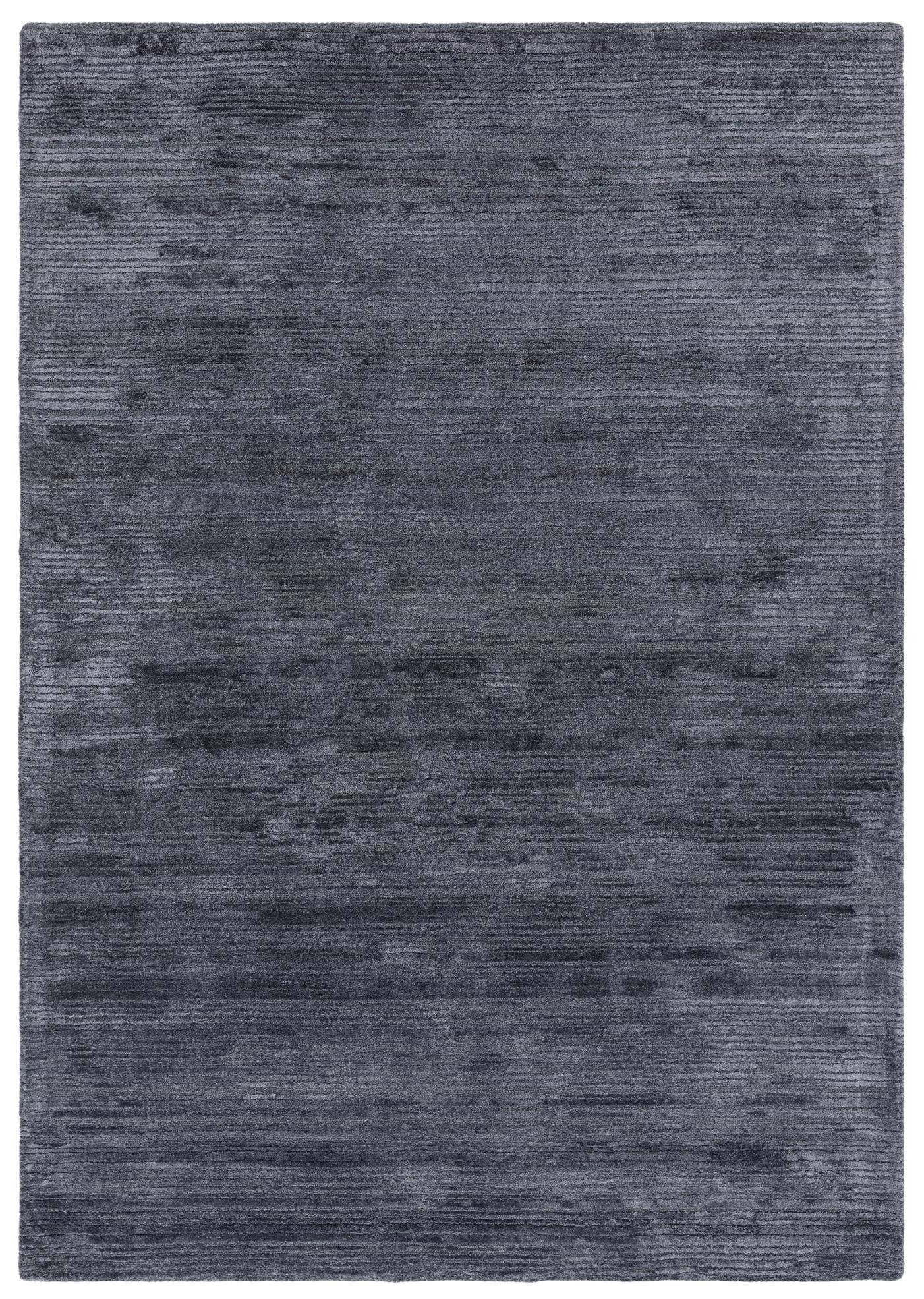 The wool base gives the rug softness underfoot, while the viscose fibres reflect the light with a lustrous sheen. Depending on the angle, the colour shifts between inky blue, deep charcoal, and hints of teal, making it a versatile and expressive choice.