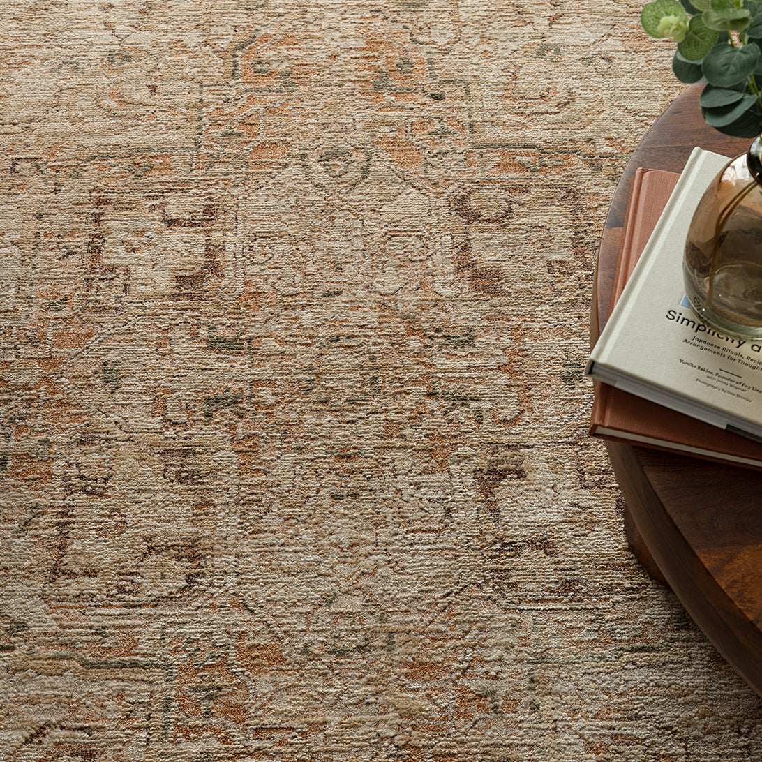 The Heriz HE03 Serapi Copper Rug reimagines a classic Persian Serapi design in warm, contemporary tones. A softly distressed medallion pattern in copper, beige, and hints of sage creates an elegant balance of vintage character and modern refinement.