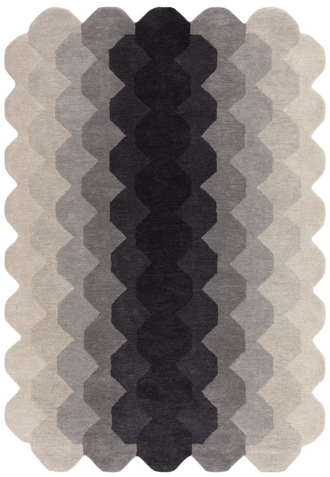 The Hive Charcoal Rug is a true statement piece, designed to transform your space with its elegant scalloped pattern and striking gradient effect.