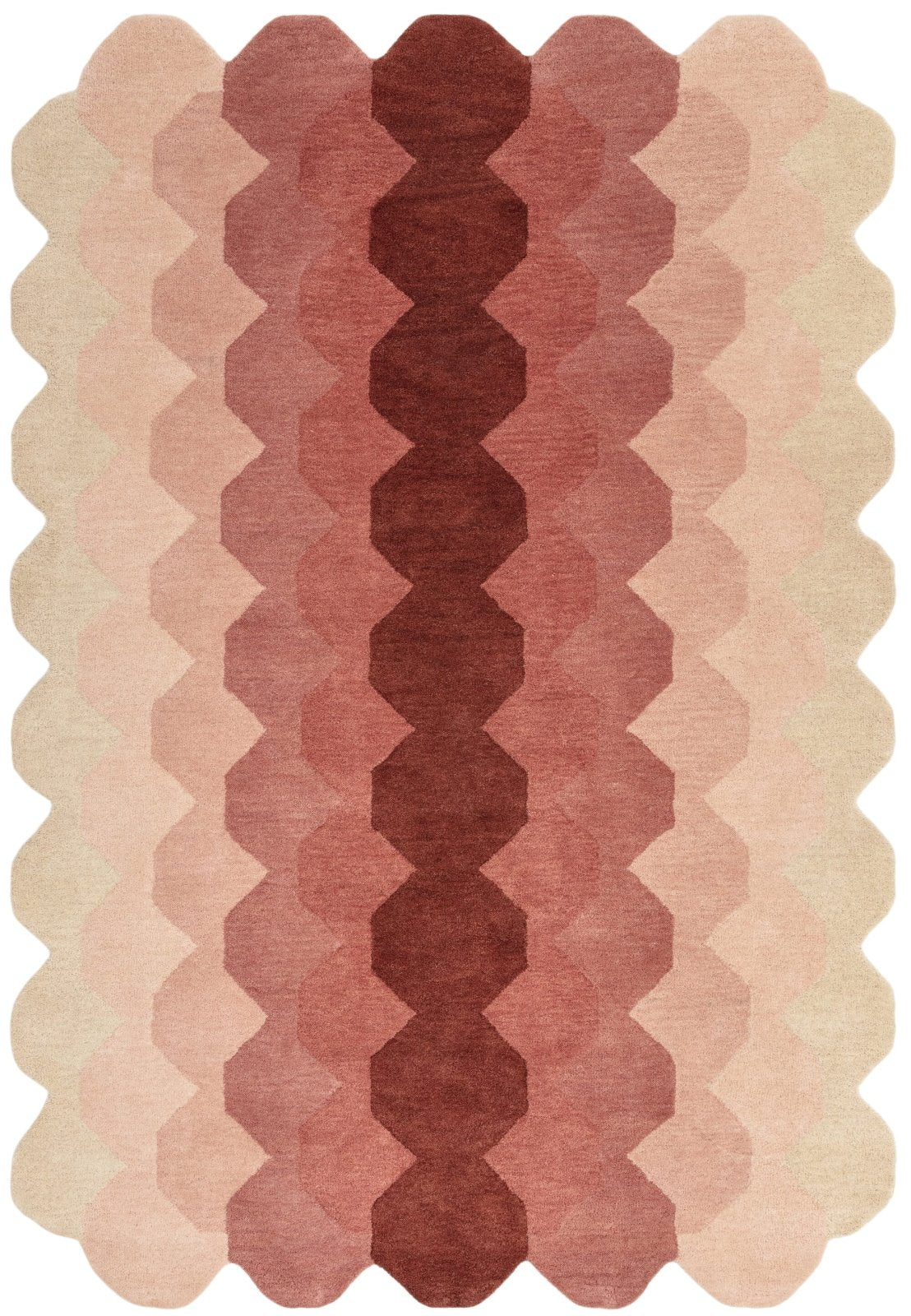 The Hive Pink Rug adds warmth and charm to your home with its unique scalloped design and beautiful gradient of soft pink tones.