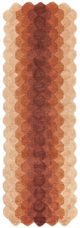 The Hive Rust Runner Rug is a striking addition to hallways or narrow spaces, showcasing a gradient of rich rust, orange, terracotta, and warm beige tones.