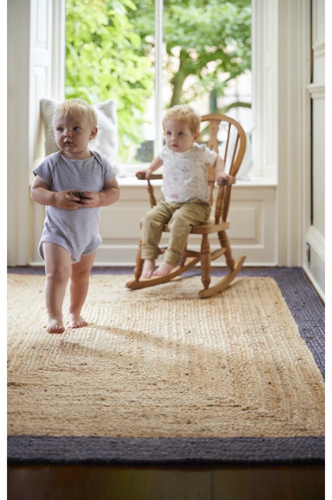 These hand braided rugs feature a bold colourful border that will suit any contemporary interior. Jute is a shiney, vedgetable fibre and is spun to create stong threads to make this durable rug. Jute is a natural fibre giving you an environmentally friendly flooring solution.