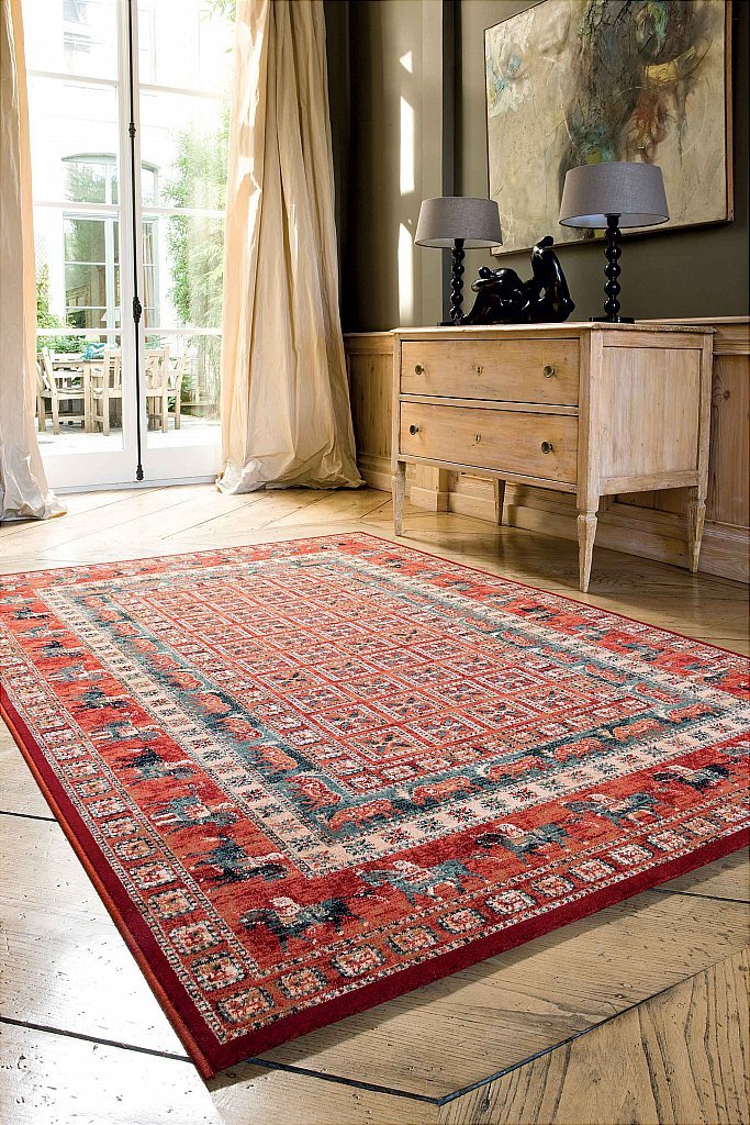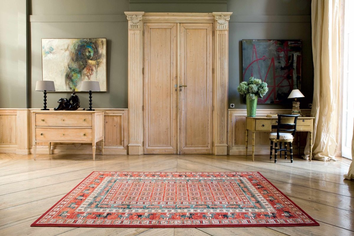 Made from wool, this rug offers a soft, comfortable feel underfoot while adding a layer of elegance to your home. Perfect for living rooms, dining spaces, or cosy studies, its timeless design blends effortlessly with both classic and modern interiors. The bold colours make it a standout feature, ideal for enhancing wood floors or neutral-toned rooms.