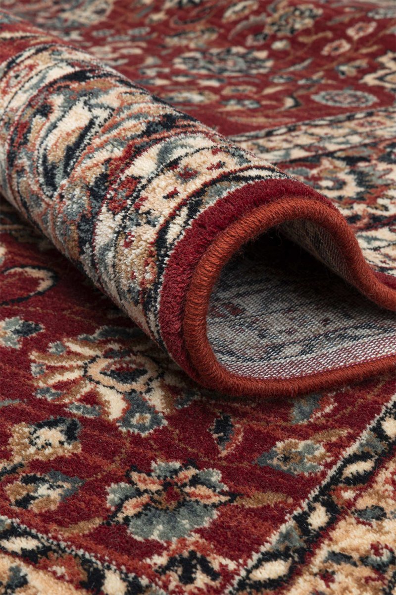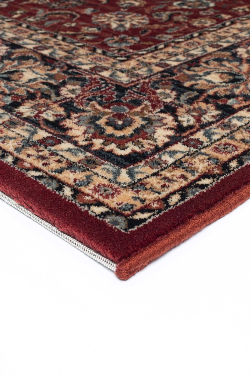 The Kashqai 4362/300 Runner Rug features a deep ruby red ground enriched with an all-over floral medallion pattern in black, cream, and sage. Framed by a coordinating dark border, the intricate detailing creates a refined, traditional look with timeless appeal.