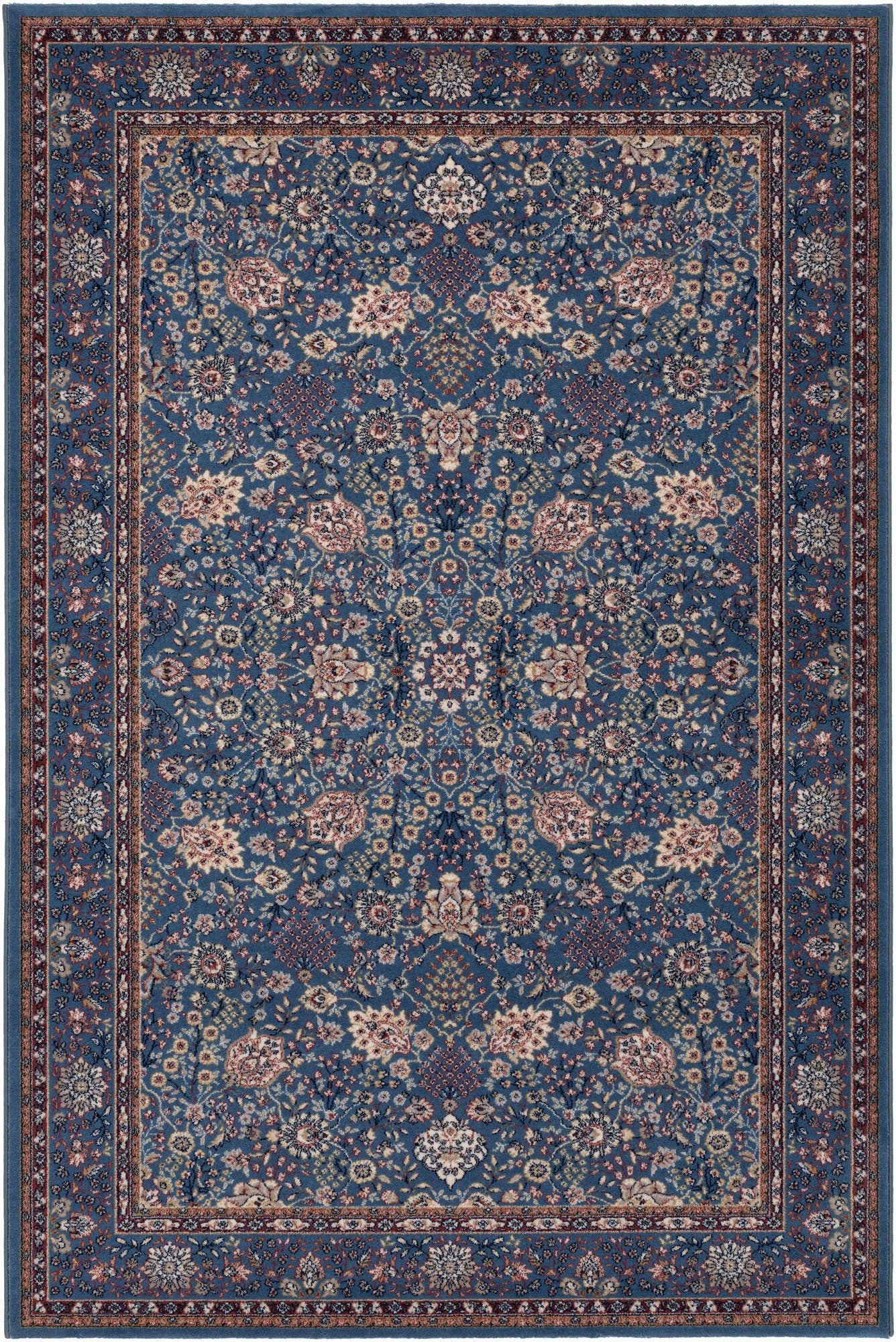 The Kashqai 45325/900 Rug brings a refined sense of tradition to any space with its deep sapphire blue base and intricate floral detailing. Soft rose, ivory, and dusty peach accents flow across the symmetrical design, framed by a classic border that adds a touch of elegance and structure.
