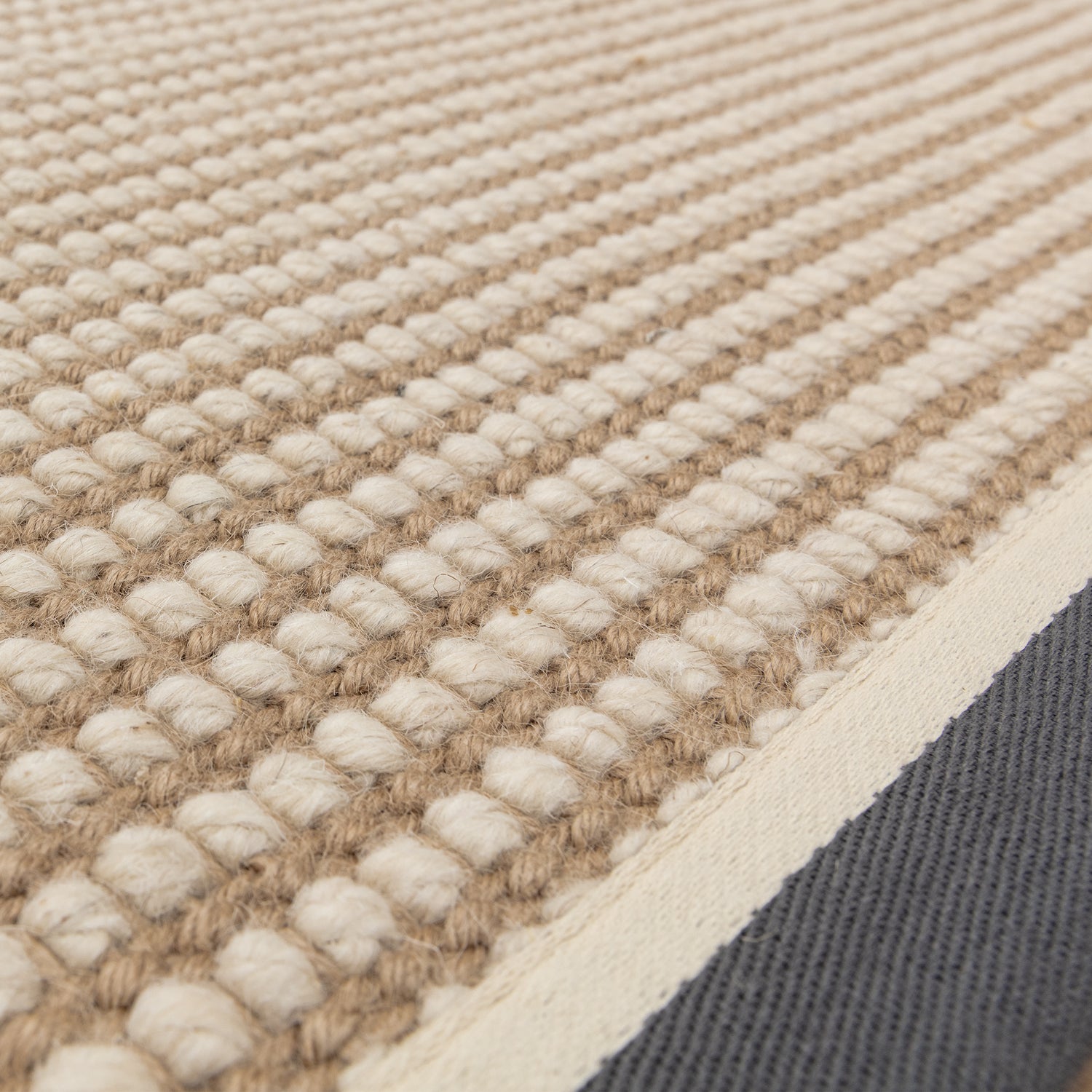 Machine-woven from a blend of wool and jute, the rug combines natural warmth with everyday practicality. The loop construction gives gentle depth underfoot without making the rug feel heavy, making it easy to place throughout the home.