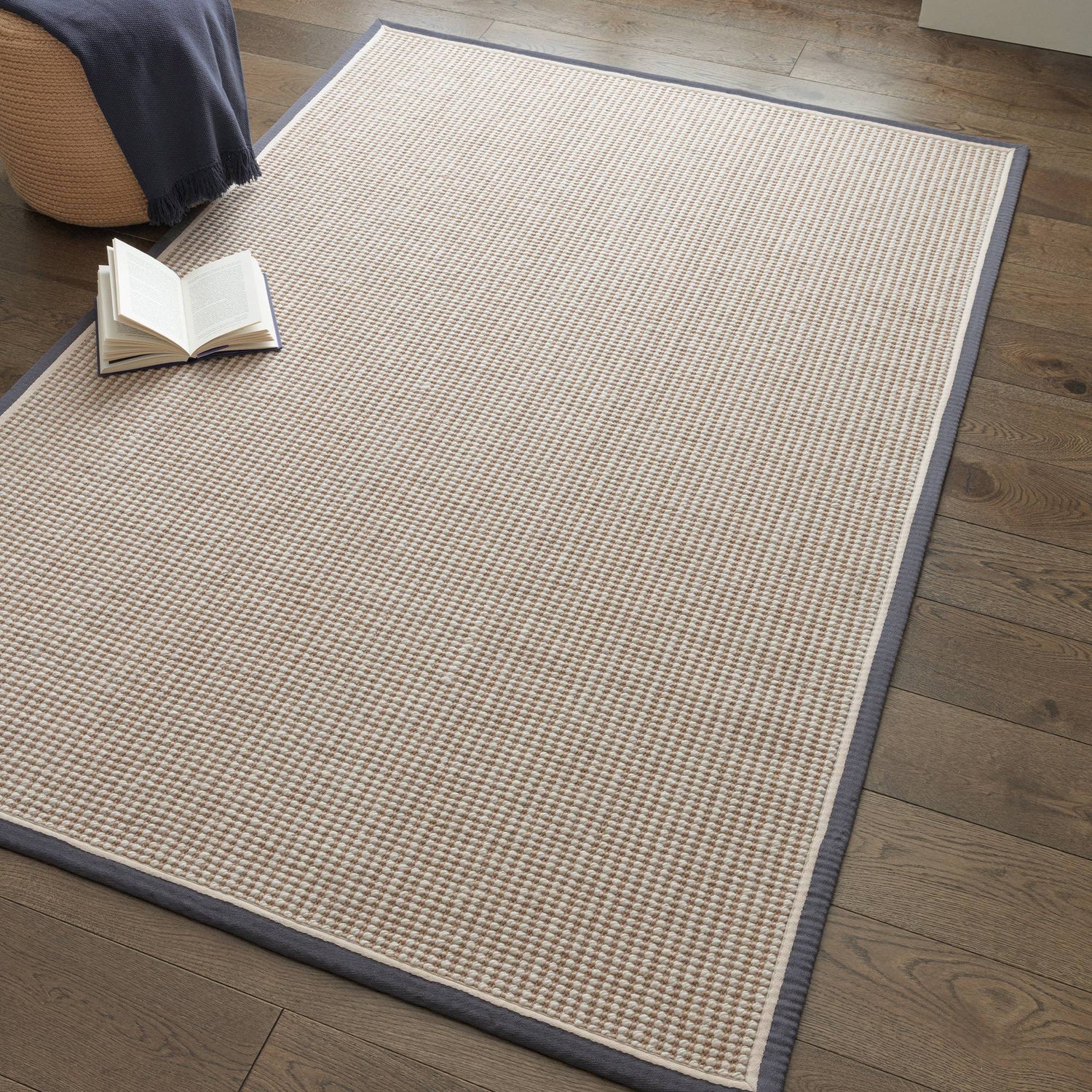 The Korra Loop Slate Cream Rug offers a clean, modern take on natural texture. Its looped weave blends warm cream tones with soft linen shading, creating a subtle pattern that feels calm and understated. The slate-coloured border adds a sharper, contemporary frame that neatly finishes the look.