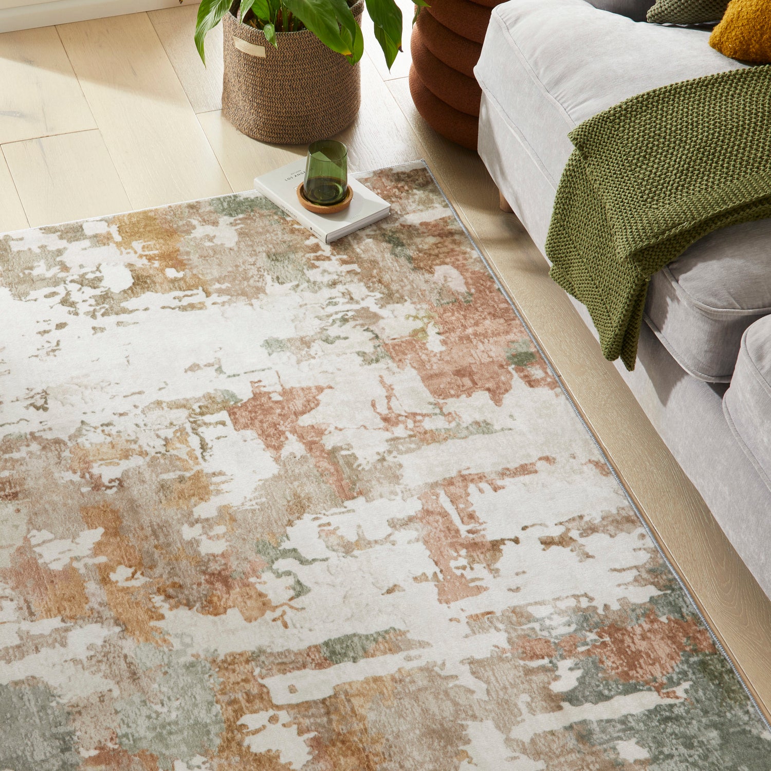 The Liberty Washable LIB107 Autumn Rug captures the warmth and richness of the season through a palette of terracotta, amber, sage, and soft cream. Its abstract design blends these tones with gentle variation, creating a beautifully weathered, painterly look that feels both organic and sophisticated.