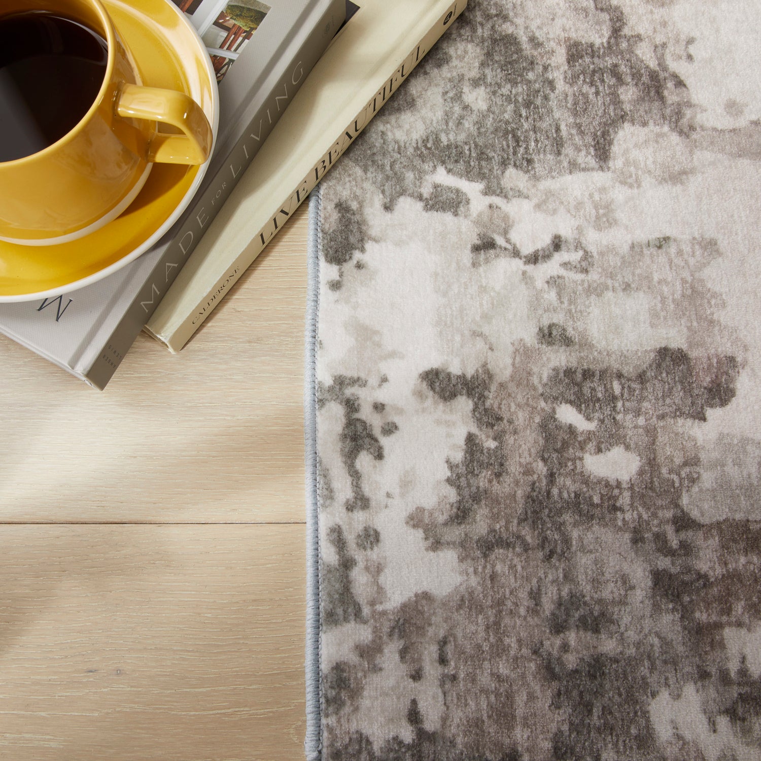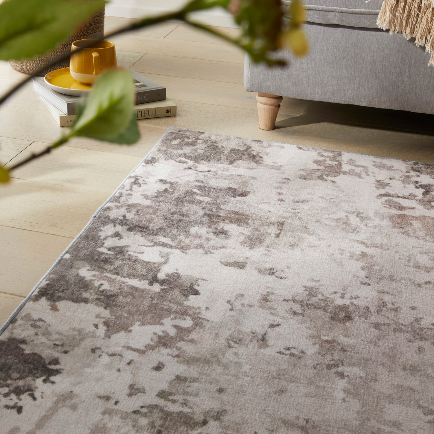 The Liberty Washable LIB108 Dove Rug offers a serene, understated take on modern design. Its abstract pattern blends soft dove grey and warm beige tones across an ivory base, creating a delicate balance of light and texture. The subtle distressed effect gives it a timeless quality that suits both minimalist and classic interiors.