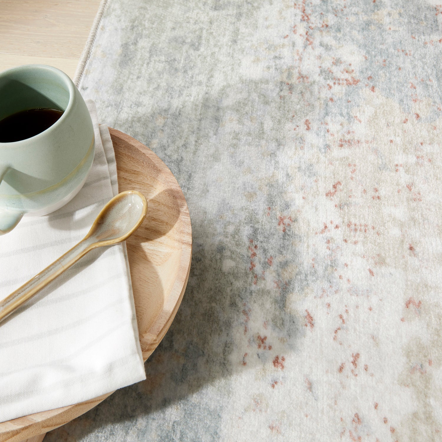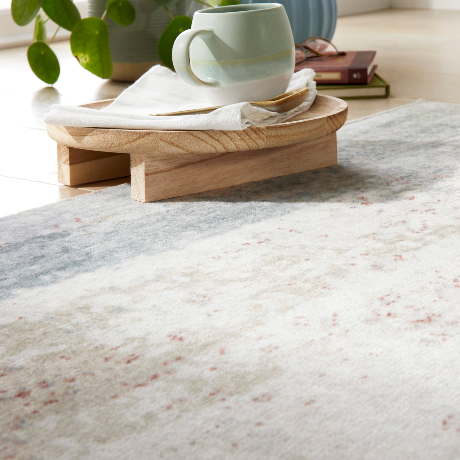 The Liberty Washable LIB113 LTMTC Rug offers a serene, contemporary look inspired by soft abstract brushstrokes. Its gentle blend of light taupe, misty blue, and cream creates a calming, cloud-like effect that feels effortlessly modern. The subtle texture and faded colour transitions bring a sense of depth and tranquillity to any space.