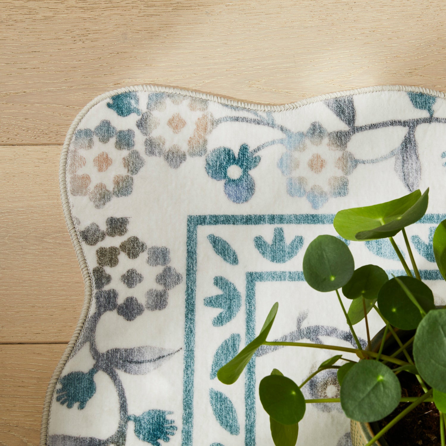 The Liberty Washable LIB308 Ivory Rug brings timeless elegance together with everyday practicality. Its delicate floral design, in soft teal, grey, and beige on an ivory base, is framed by a scalloped edge that adds a touch of charm and individuality. Birds and blossoms create a serene, decorative pattern that feels both classic and fresh.